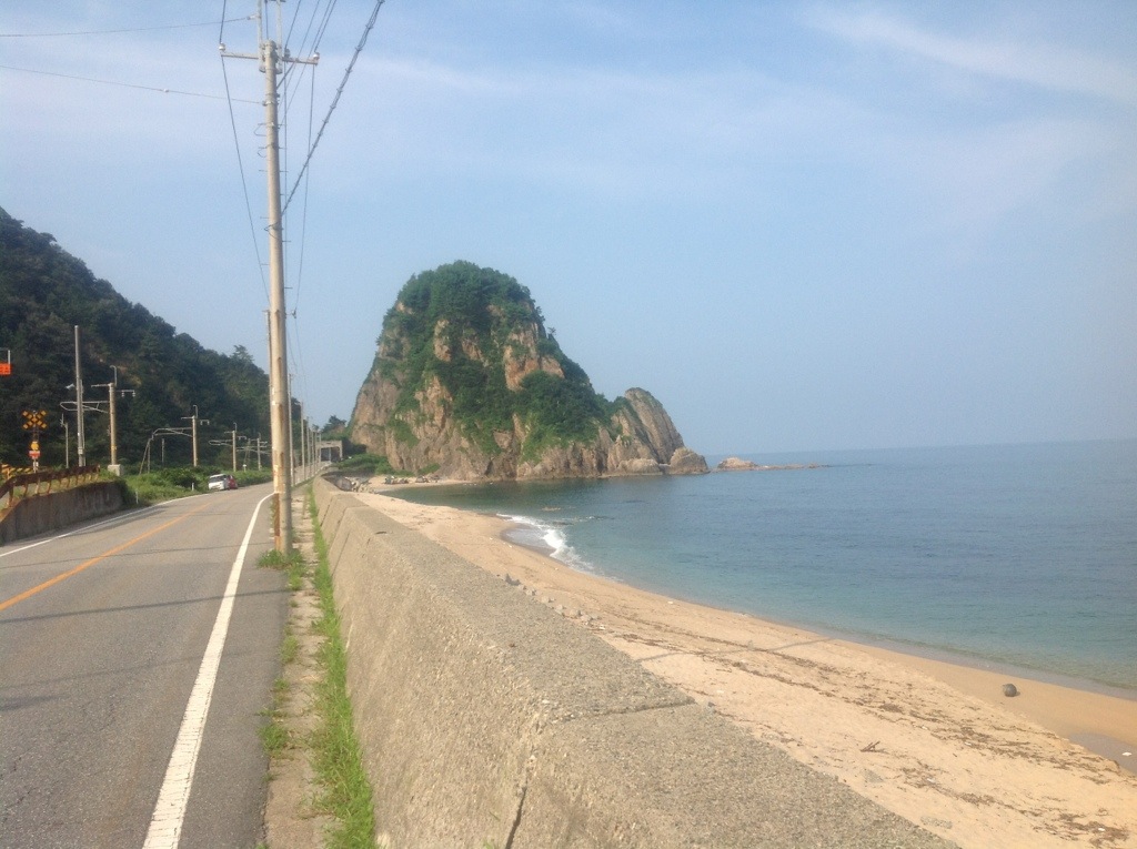 Passing through the sprawling coastal town of Murakami was my halfway point, where the road turned back inland for a spell to cross the flat plains between sea and mountain. It wasn’t long, however, before it rejoined the coast, although a much straighter and sandier coast.