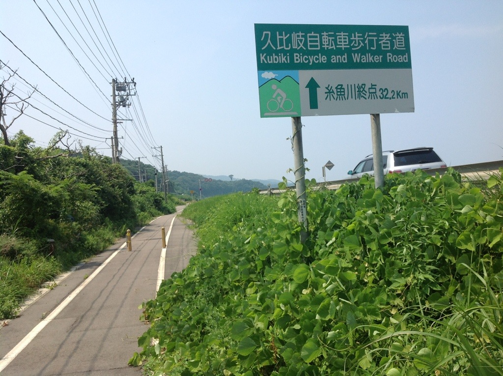 From Joestsu to Itoigawa, the next city along the coast, the entire route was a great bicycle path that had been made out of an old railway. It even reused the tunnels, which gave me some respite from the blistering sun.