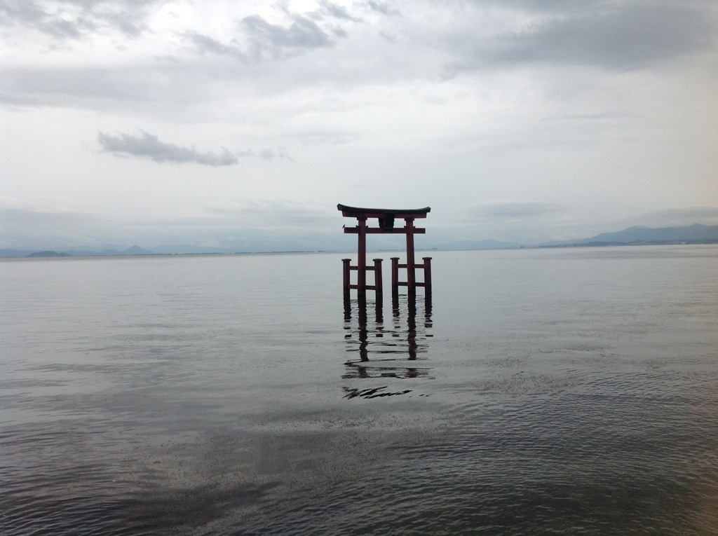 As I got further south along the lake and closer to the city the development became much more apparent and soon I was cycling through that sprawl that radiates from a city like the white of an egg from the yolk. Still found this Shinto gate standing in the lake despite it all.