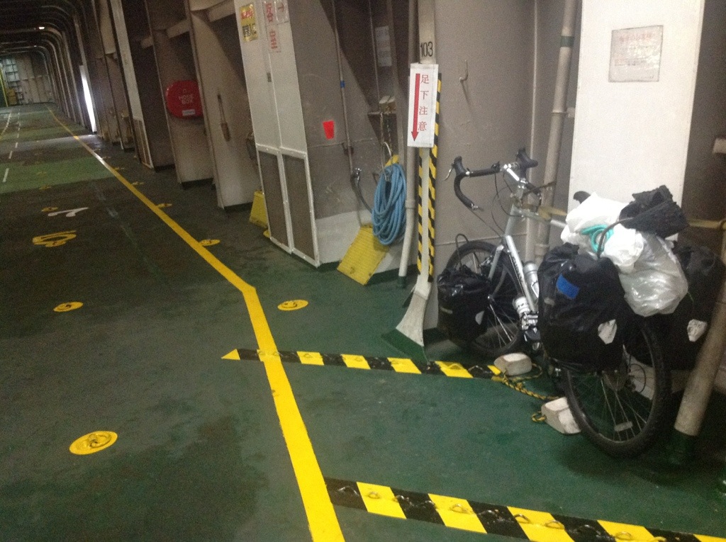 The ride from Isumisano to Wakayama port was a short but wet one as heavy rain passed over. At the port I drew the attention of a bus load of kids while eating my cup noodle on a bench at the ferry terminal. I few of them asked for photos with me, it was cute.