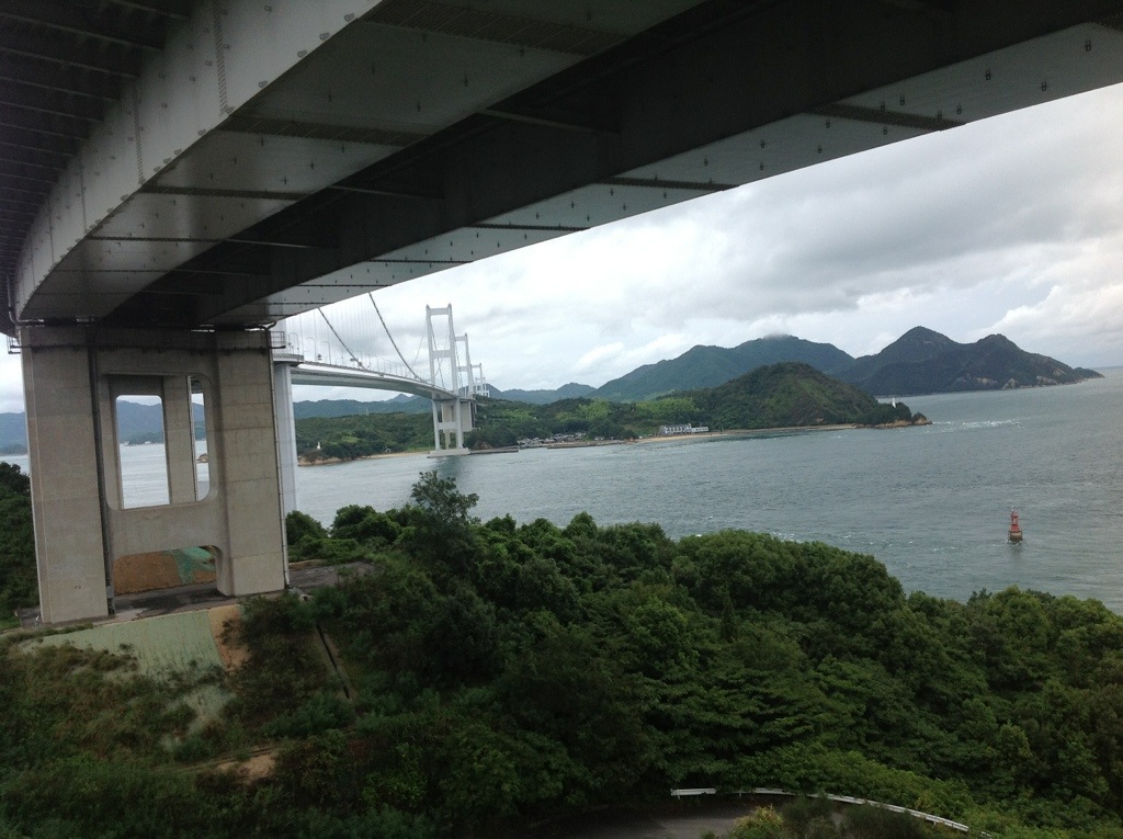 The Shiminami Kaido is a cycle route that goes through the inland sea, hopping between islands that dot the water via large ( and pretty high up) suspension bridges.