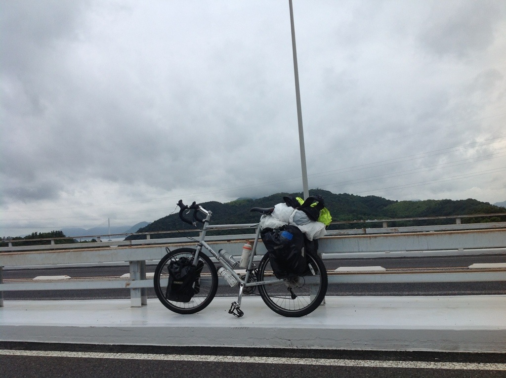 It was raining and pretty windy when I got out of the tent this morning. I think it was the tail end of a typhoon that was passing further north. I considered waiting it out and cycling route the next day, but at 9 it had cleared up some.