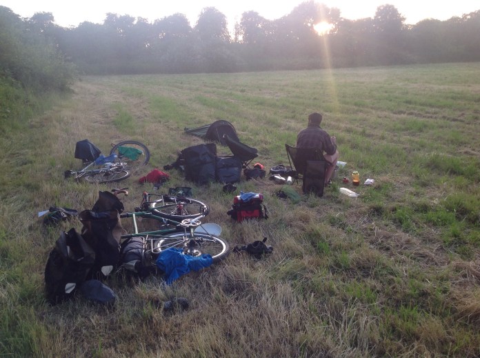 Around 7, a couple of hours after joining the trail we turned off to find somewhere to camp and came across a perfect secluded, vacant field almost immediately. Filling up our water at a nearby sports ground we settled down to a calm, sunny evening.
