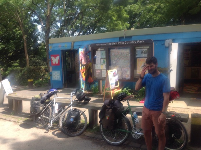 After our Lidl stop (which also included a completely unhelpful trip to a nearby outdoor store to get our tent poles replaced) the trail became a bit tougher. The route was to be shared with horses and after passing into Reddish Country Park the path became a sandy, rocky trial that slowed the loaded bikes down. There were also stiles every couple of meters and after lifting our bikes over maybe the tenth stile of the day we decided that maybe the TPT wasn’t for us.