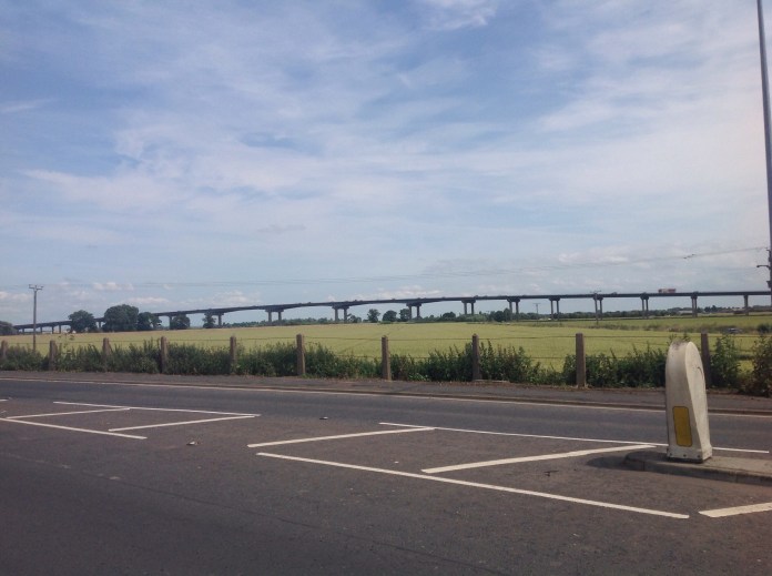 Flat roads and tailwind brought us to what we presumed to be about halfway to Hull in a little over an hour. We crossed the River Ouse and followed the motorway onwards to Hull.
