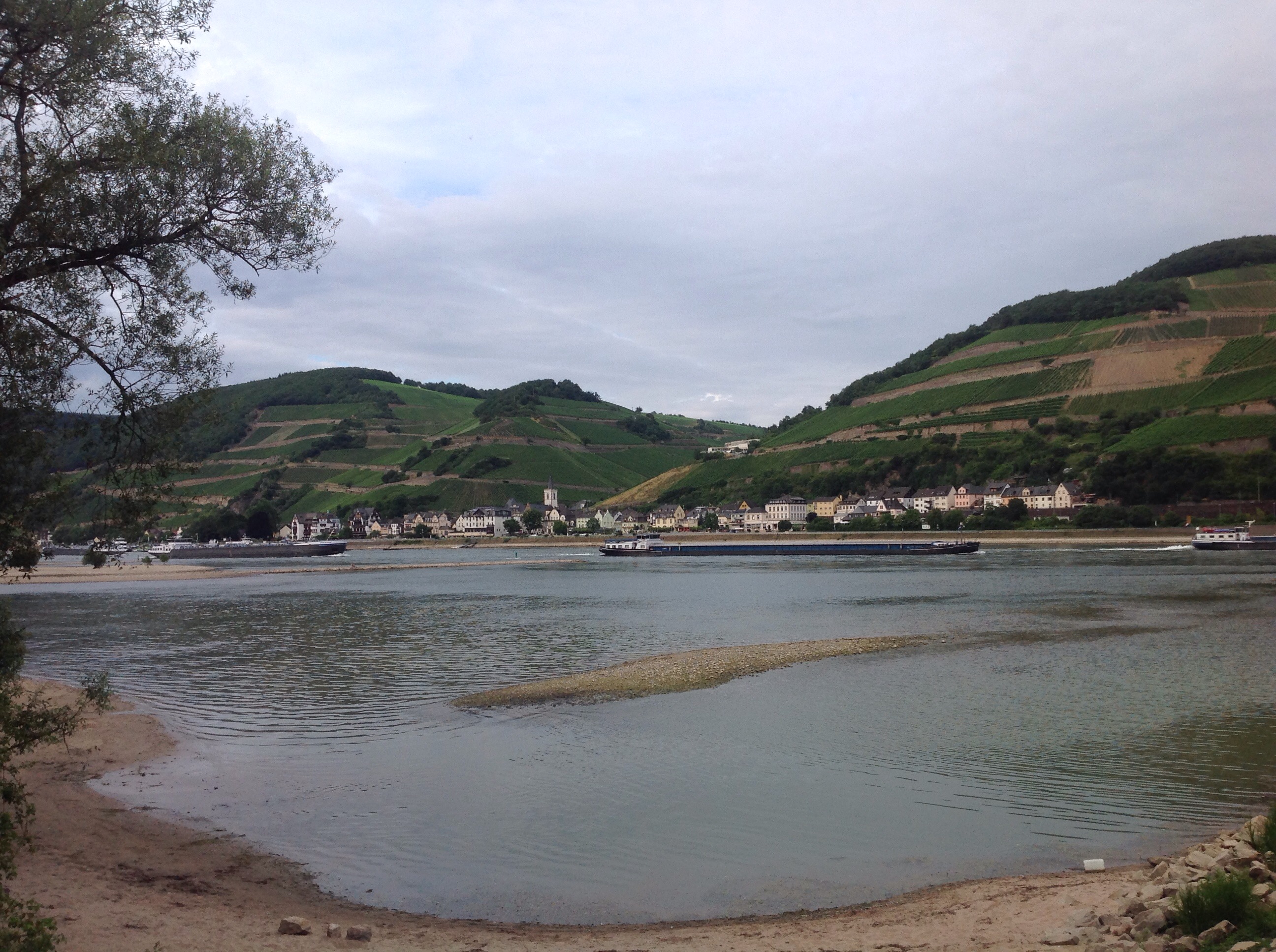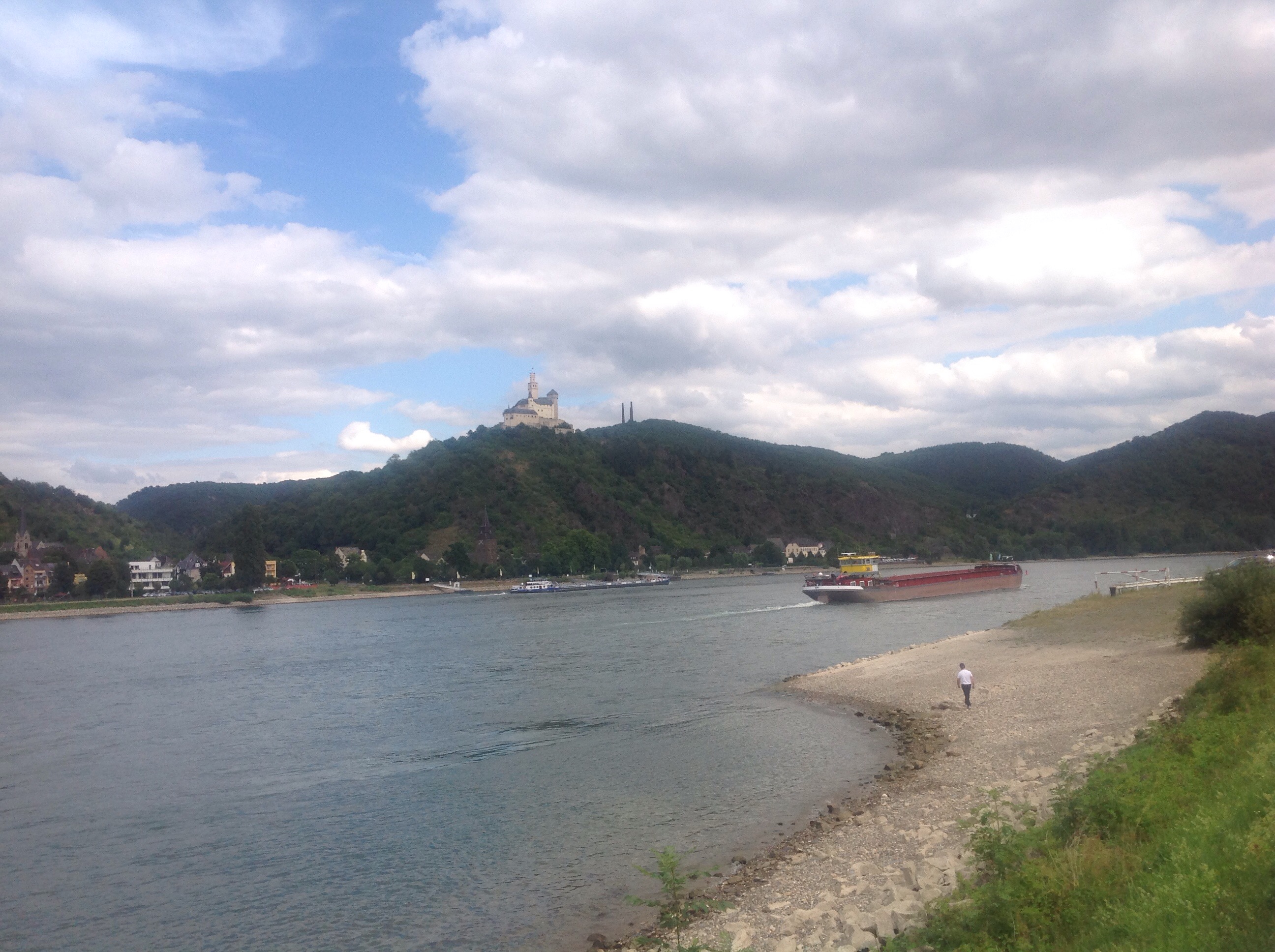 We had read about this part of the EuroVelo 15, the route that follows the length of the Rhine. Apparently the stretch from Bonn to Bingen was one of the most scenic of the whole route. It really was impressive. The river wound through a hilly countryside, and at almost each wide meander a castle, ruined or restored sat atop the highest peak.