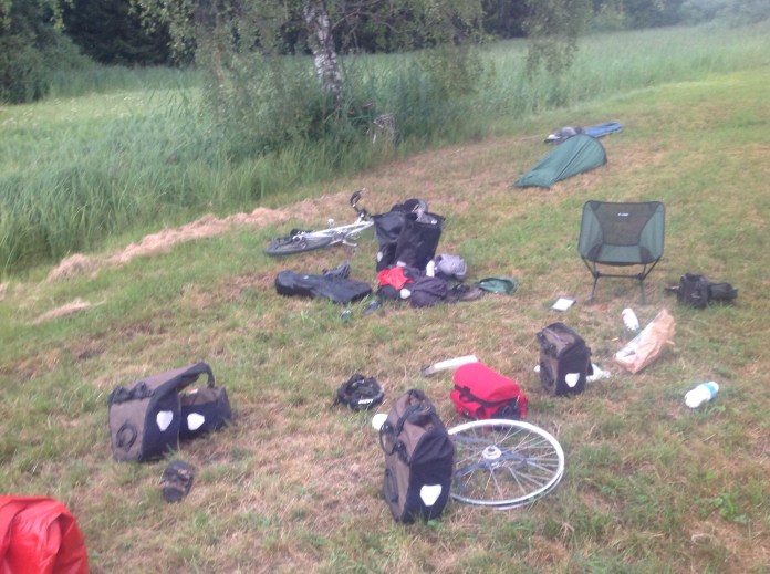 The afternoon ride was similar to the morning and we made good time. Around 7 we wheeled into a field by the road just a bit outside Jettingen and set up for the night.