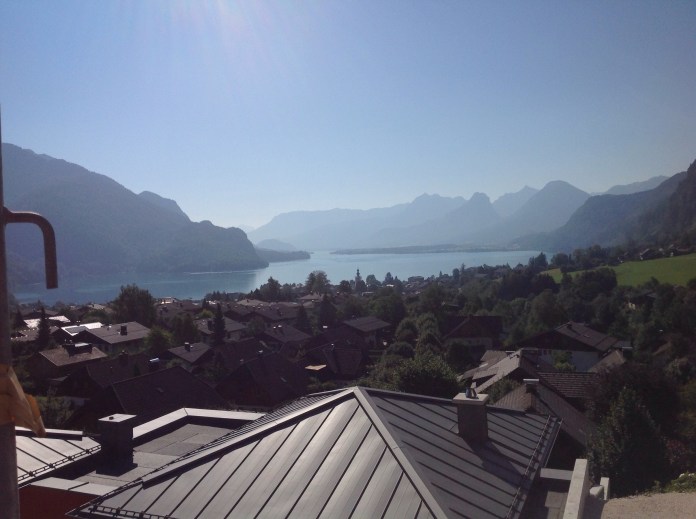 Leaving Lake Fuschl behind in the morning, we climbed for a bit and then came across the bigger and more spectacular Lake Wolfgang, another lake framed by the Alpine peaks which we followed for about 15k. We then turned inland, following the road into Bad Ischl. Here we hopped onto a cycle route that took us through shady woodland following along a fast running stream all the way to the next town of Bad Goisern.