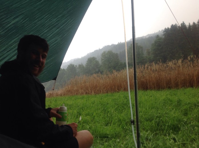 We stopped just in time as the thunder and lightening came in again, and with it the rain. This was the first rainstorm since we had bought the tarp we had been out in, so excitedly we set it up. And what a great purchase! Once it was up we had a huge area to sit under while the rain passed us over. We cooked dinner and then not long after, wrecked from the days ride, fell fast asleep.