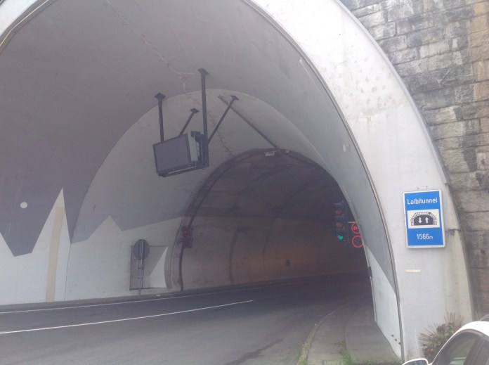 With some relief we saw we could ride through it on the footpath and the cool, dark downhill of the tunnel was so refreshing. We crossed the border in the tunnel, it had taken some work but we crossed into Slovenia.