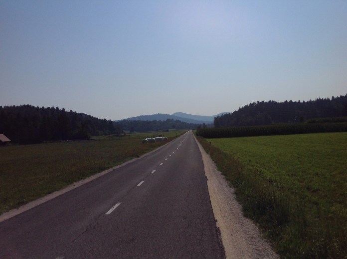 From Illirska Bastrica it was supposed to be a short ride down to a lake where had planned to camp. As it turned out, the road we were going to take to get to the lake was closed. We wound up cycling around a bit a aimlessly for a while, trying to find an alternative route. At one point we were cycling across a dirt track though farms and orchards. This was not the way we were meant to go.