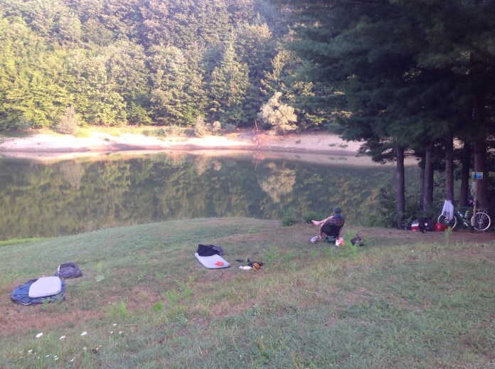 It was, or at least it was the body of water we had been searching for, it turned out it was a reservoir. Still, we had reached the end of our day and found a spot by the lake to set up. There were a few other groups, mostly old and young guys fishing at the shore.