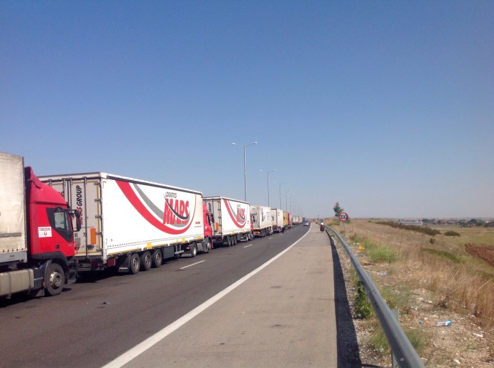 We could have doubled back into Svilengrad and tried to get on the motorway from there, but we could see it from where we were now, plus we had already cycled a not insignificant distance from Svilengrad, so we didn’t really want to double back. We pushed on along the old road and it curved promisingly towards the motorway and then…passed over it. Now that we we here though, right on top of it we could see it was pretty much devoid of traffic save for the occasional truck so it seemed like the best option get on it for the last few kilometres left before the border.