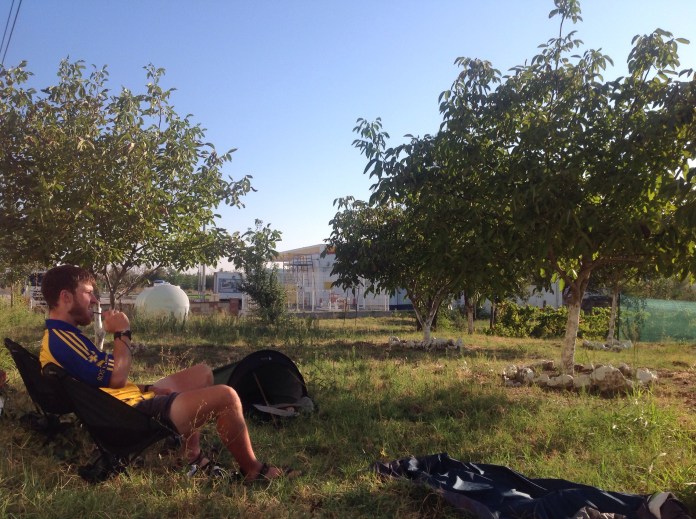 After a very welcome shower we shared photos and talked as best we could with Erdem. He was a bike tourer himself and enamoured with the new service his workplace now provided. He even, when we were about to cook dinner, sat us back down and brought out a delicious impromptu spread: bread, rice, yogurt and Kofte (a kind of sausage). We had never camped at a petrol station before but this was a great introduction to the practice and wouldn’t be our last time either.