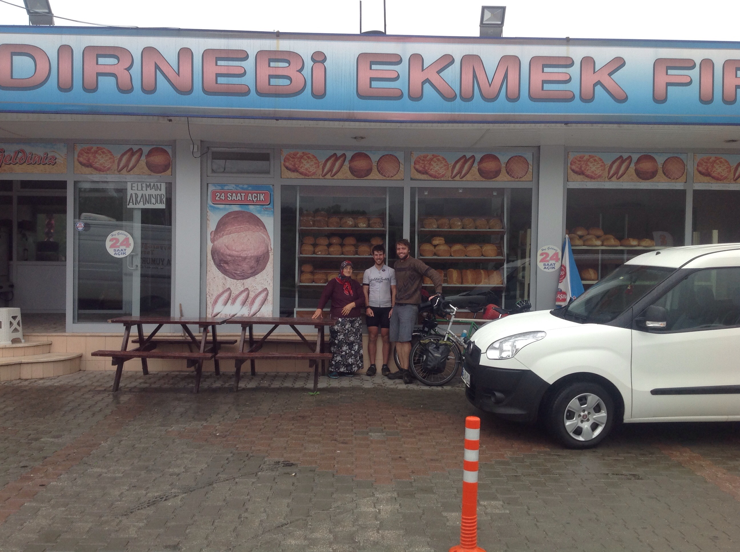 a photo with the woman who was so kind to us at the bakery, she was chuffed to have her photo taken and made sure we were standing under the part of the sign that said “ekmek” which means bread