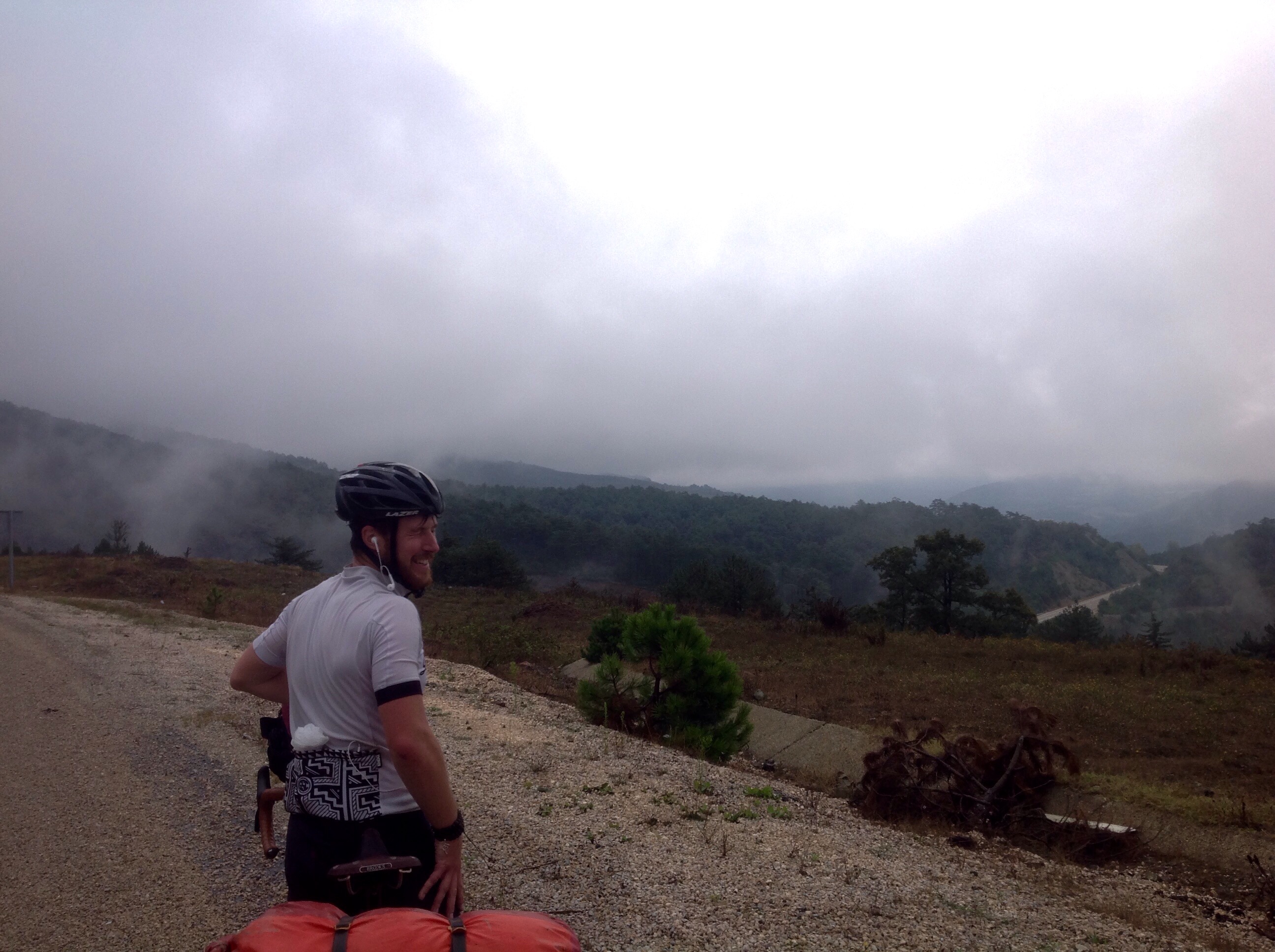 But today even though we had some nice climbs the clouds were so low and nice view as a reward was not forthcoming. Although the cool, overcast day did make climbing much easier, compared to the heat we’d been riding in previously.