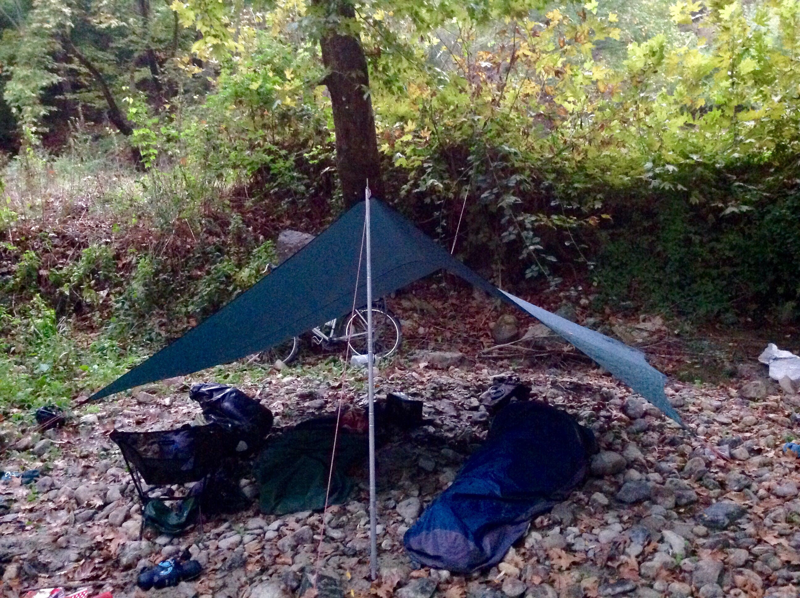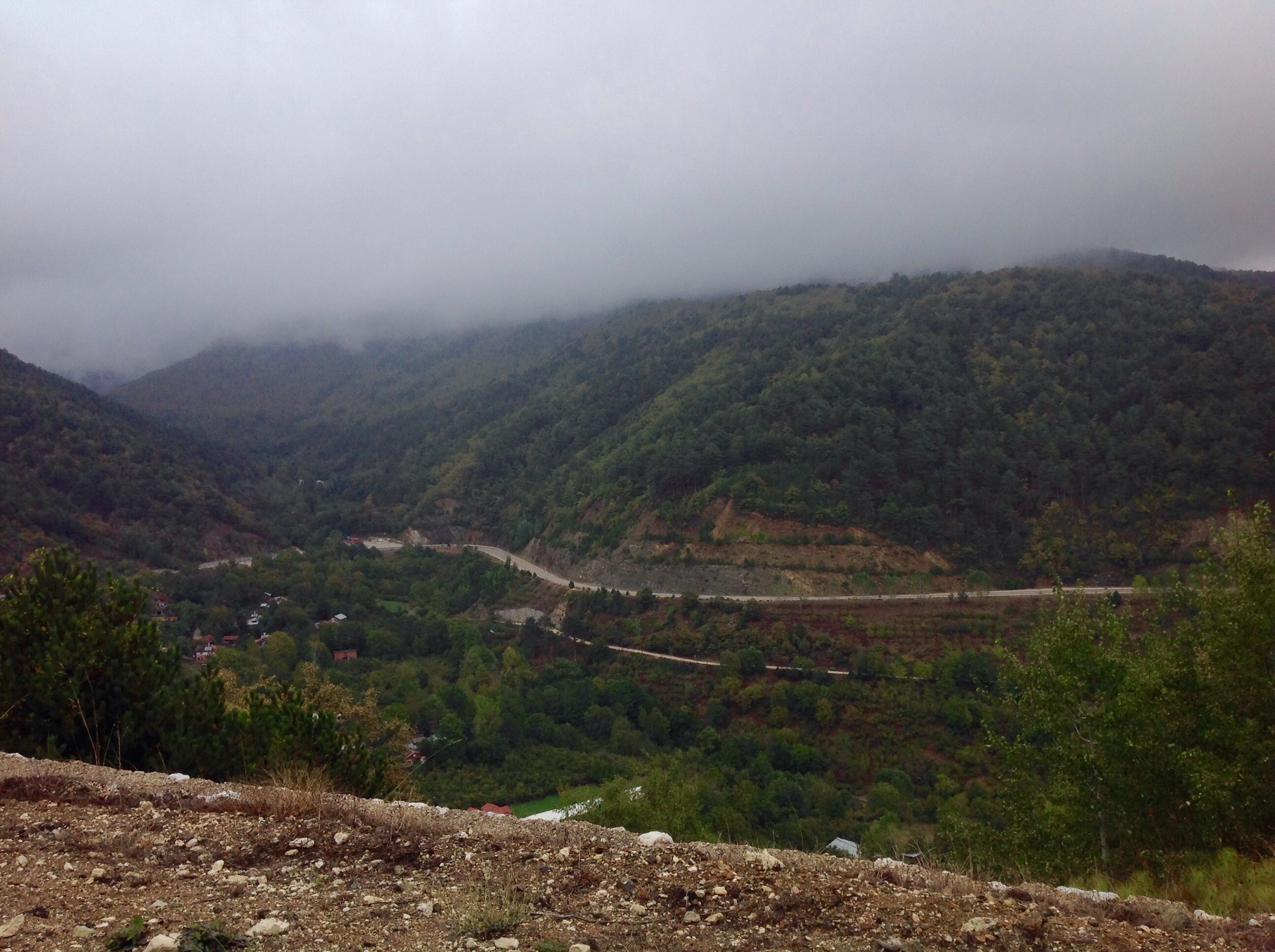 By the time we had made it to the top the rain had eased off, though the clouds persisted. Hurtling down the descent we passed through one small town called Ilica where we stopped to pick up some water. A Turkish chap was very pleased to see us outside the shop and beamed at us and shook our hands. After this fun encounter we continued riding downhill until we came to a bridge. Taking a turn off and following the bank we found a camp spot next to a river, swollen by the previous three days of rain.