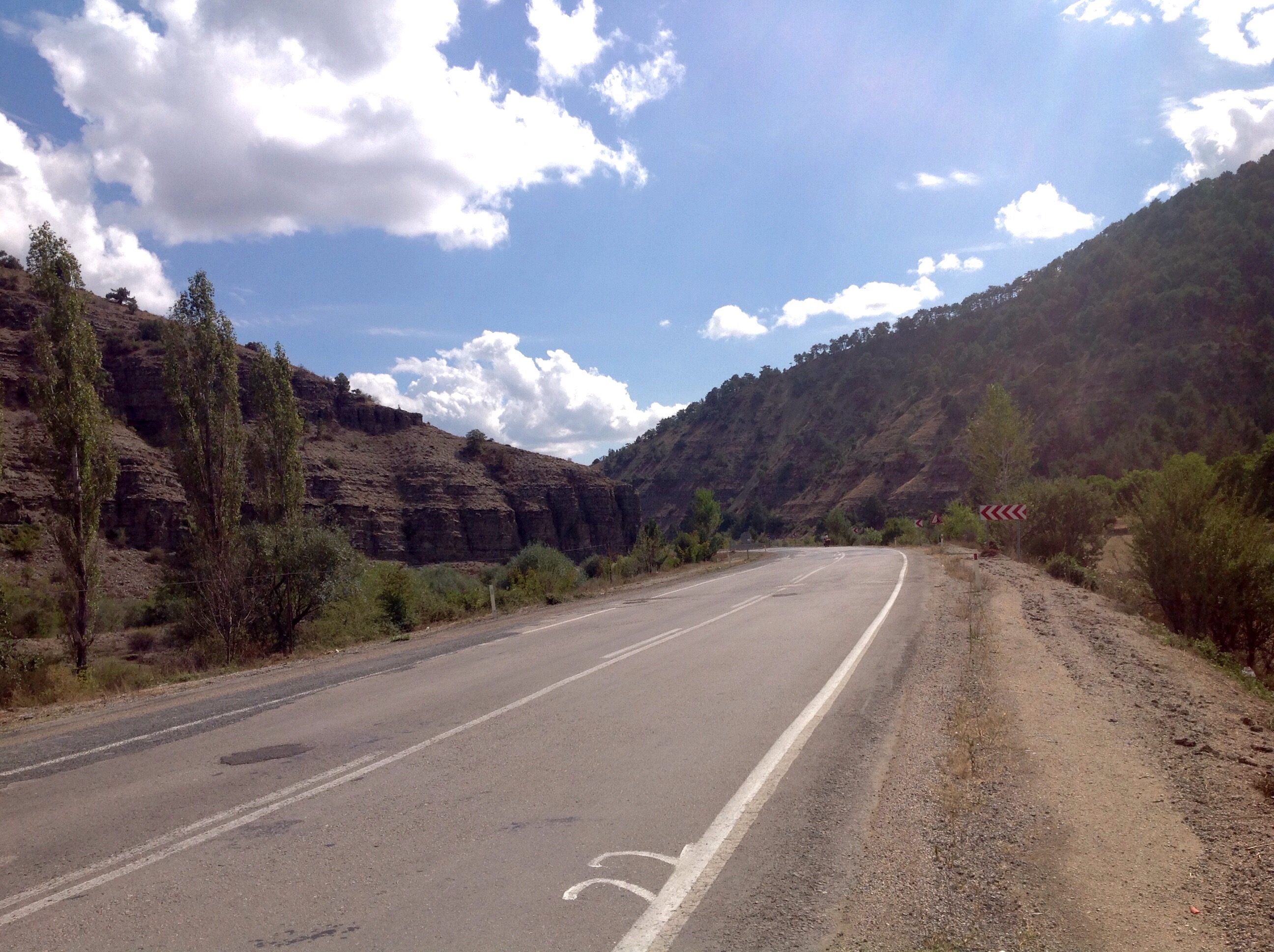 After we were halfway down the descent on the other side, I’d say the starting point was after passing through the town of Tašçilar, the scenery changed drastically. There was little vegetation and the mountains now exposed we big sedimentary things with the various layers of rock visible like slices of bread, one on top the other. It felt now,moor the first time, that we were starting to enter the Middle East.