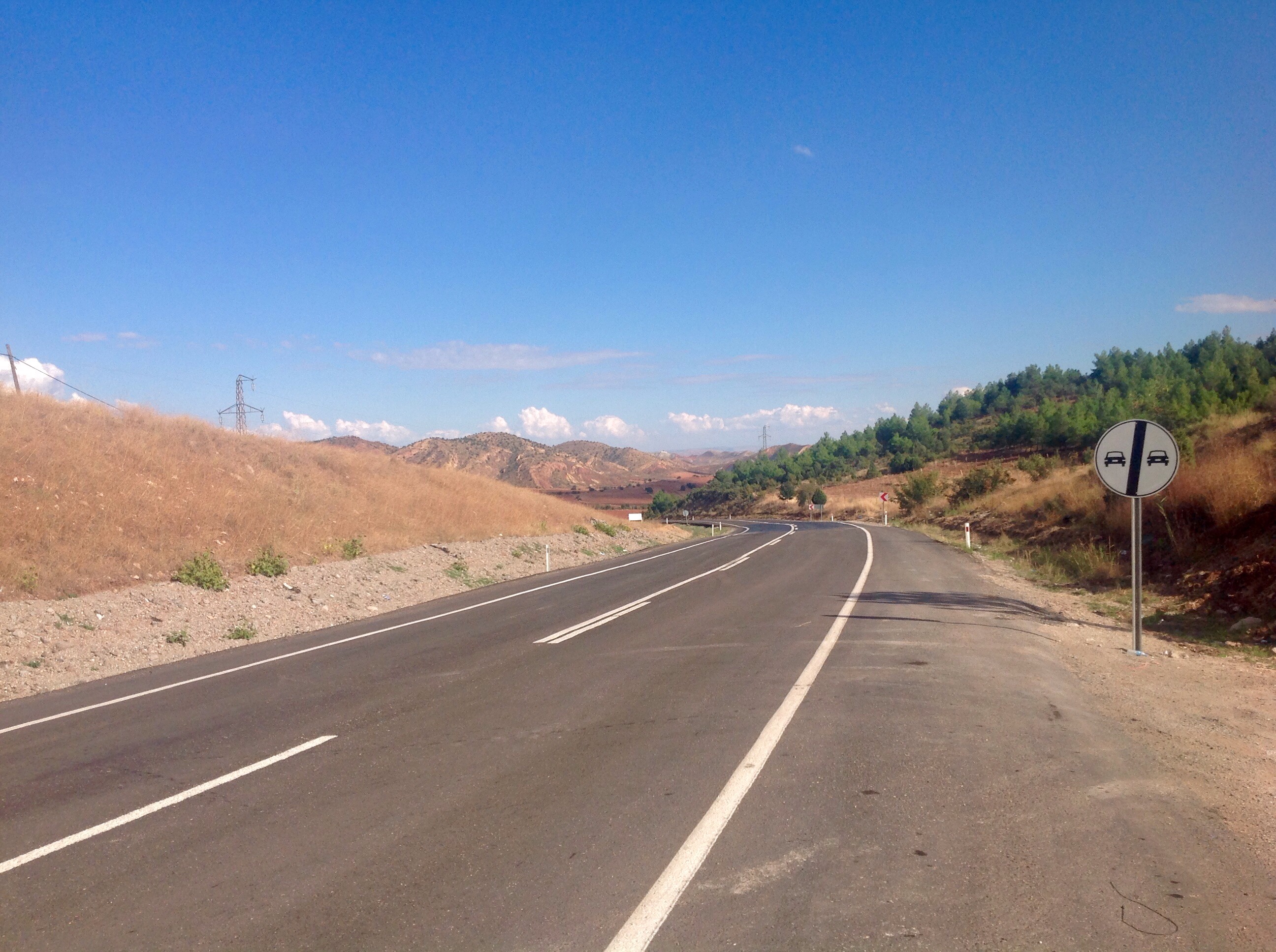 We had a morning climb through the rocky, mountainous scenery but there was still a decent amount of green vegetation around. The climb took us up to 1100 meters and we got a great view of the countryside behind us. It was good we stopped to take it all in, for although it was different to what we had cycled through before, the terrain still felt a bit European or something.