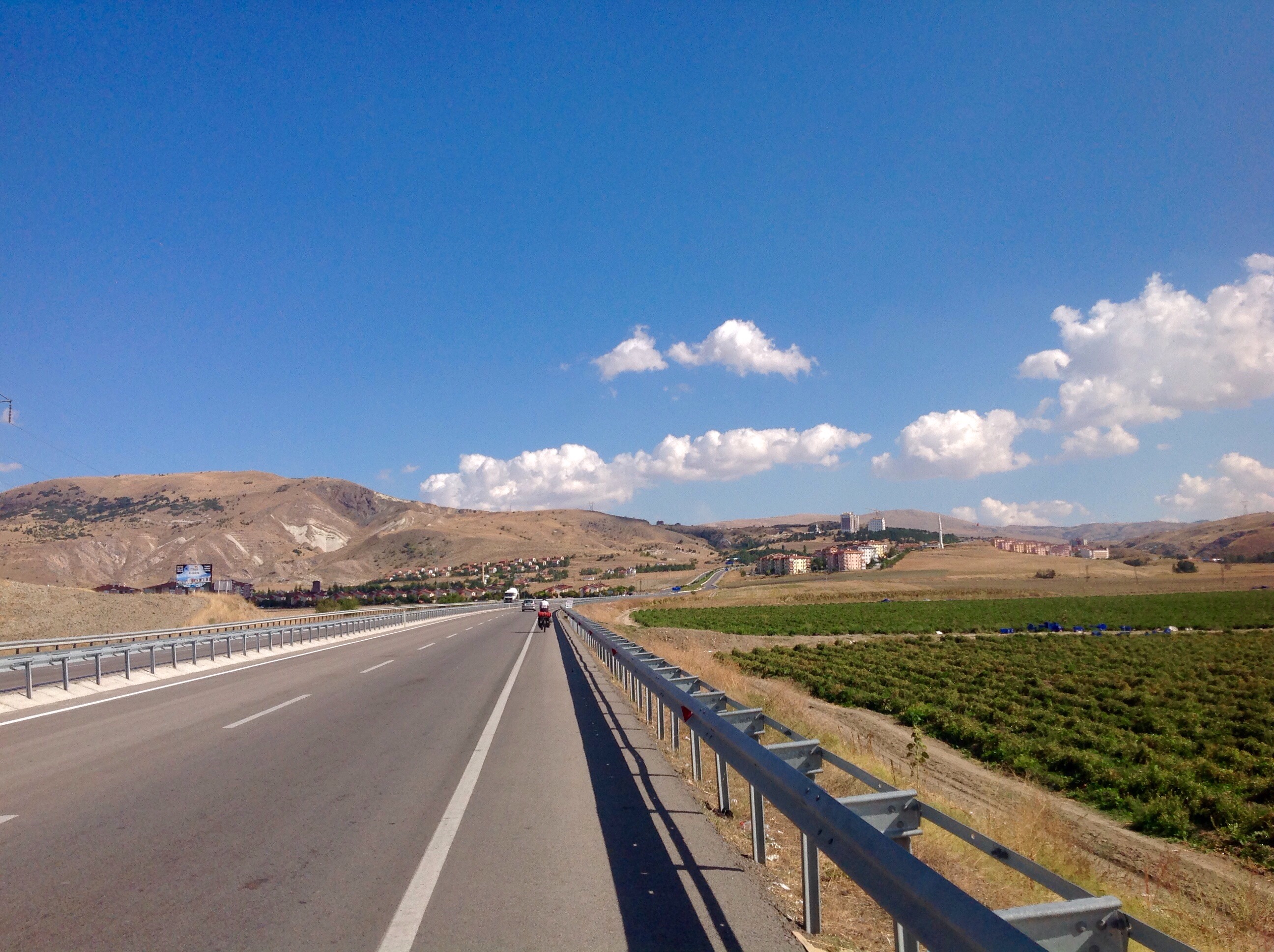 Much needed because not long after was the last big climb before Ankara, but it was a long drawn out one and the sun had gotten quite hot. We took a pit stop in a petrol station halfway up, got some water as we had run out and some food. We then resumed the climb. When we got to the top at last we saw Ankara spread out before us, but there was still a lot of cycling to do before we reached our destination, our host Ahmets place.