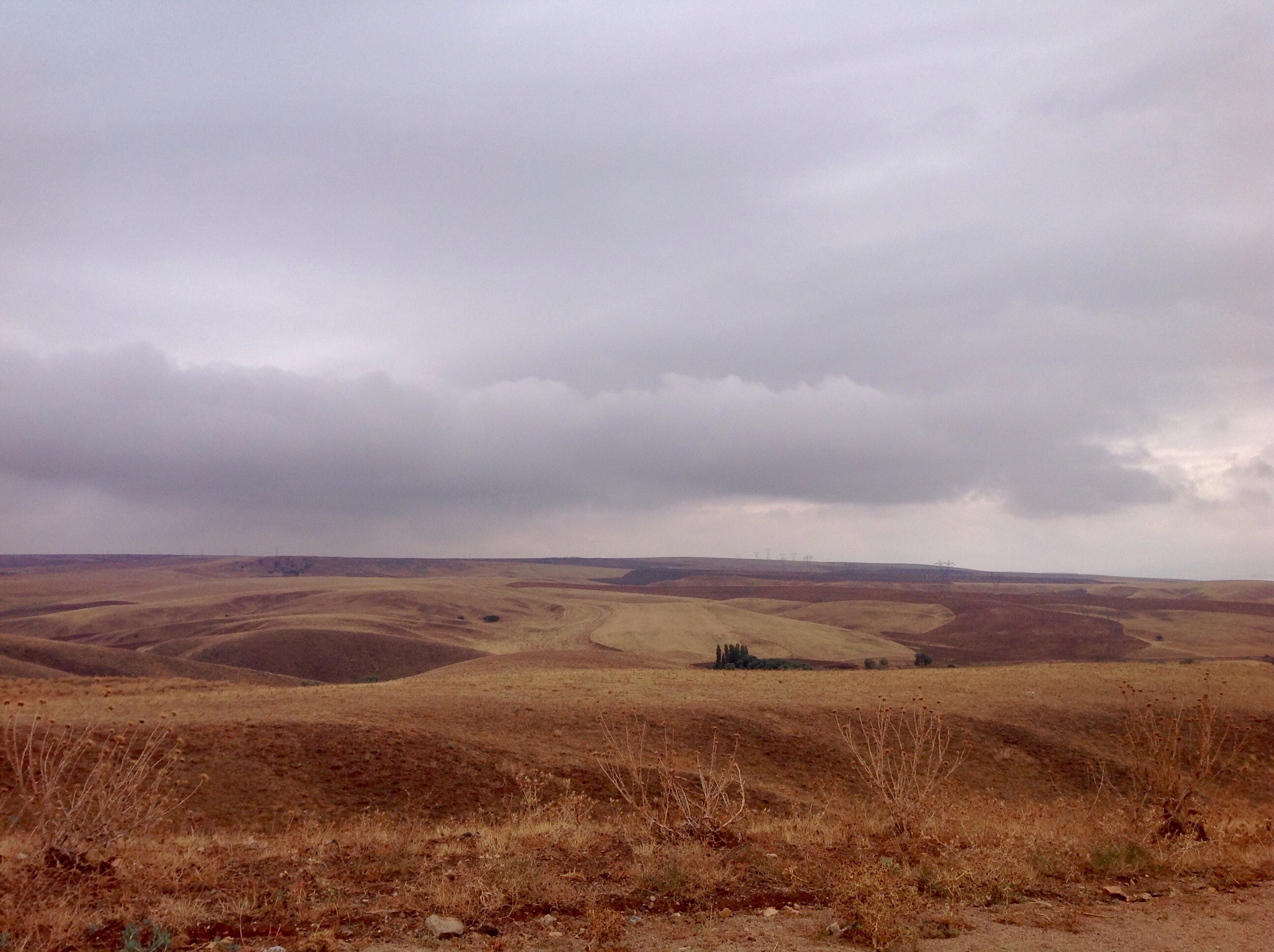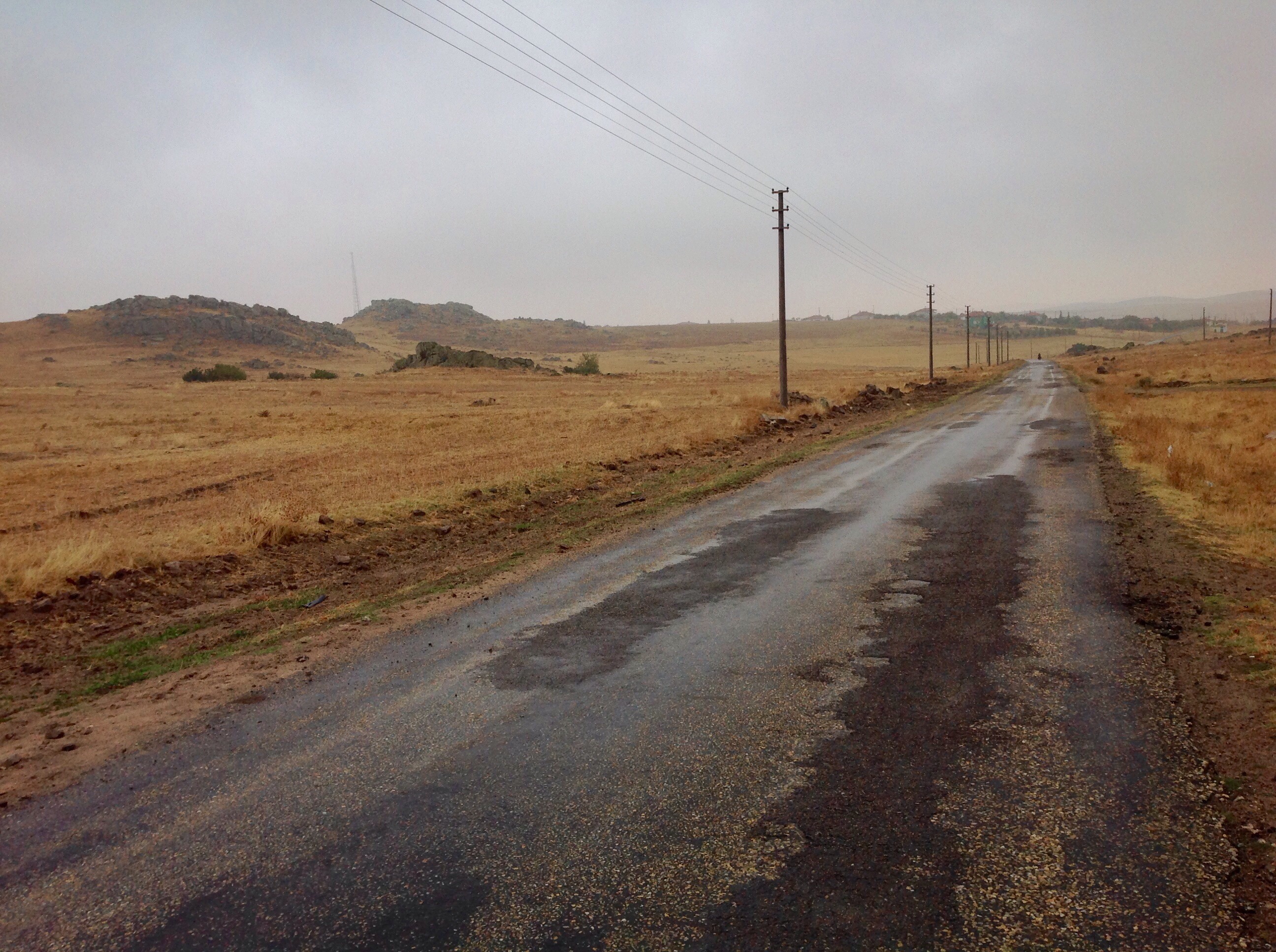 The morning ride was up high in the steppe and once the clouds cleared we got a good view ahead of the big lake Hirfanli where we planned to stop for lunch. The roads were still small, quiet tertiary roads across the barren hills, every now and then we’d pass some shepherds with their donkeys, flock and sheepdogs. One guy had a particularly mean looking pack of sheepdogs that he had to shout down from chasing us along the road.