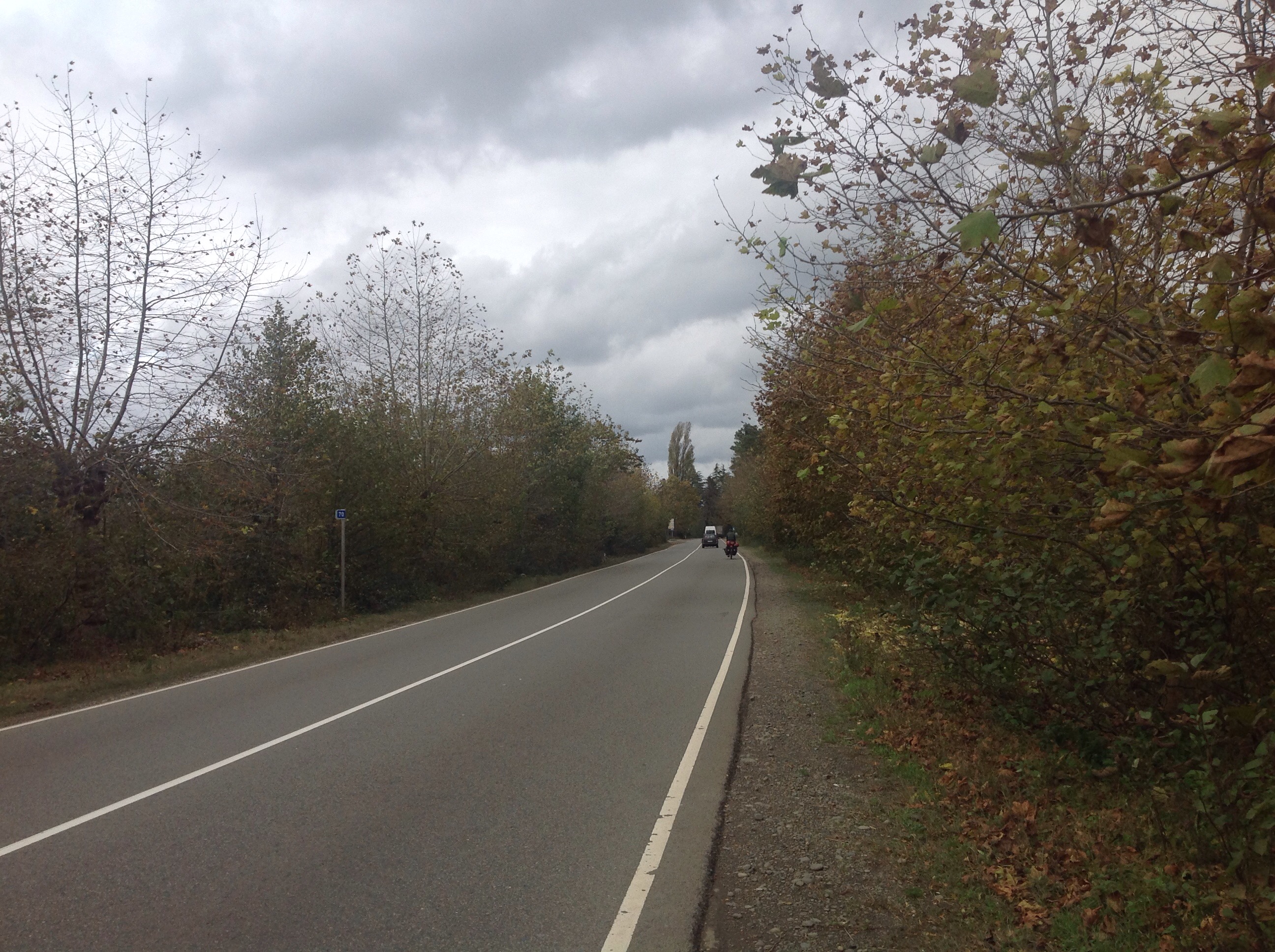 We waved goodbye to the two of them and set off in the late morning. Arriving back in Batumi for the third time we followed the coast road out of the city. The road followed the train tracks for a while by the flat seaside before turning up into the hills for a some time. Back to the coast and through the town of Kobuleti where we picked up lunch from a small bakery. Took the inland road out of town, passed a hitchhiker waiting for a lift and after asking some road workers for directions followed the route towards Ozurgeti.