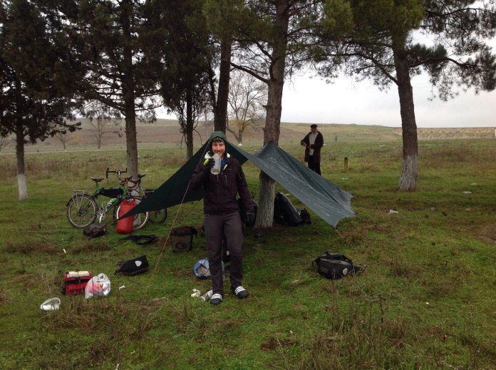 Anyway, we climbed and descended most of the rest of the day. There was one long climb that brought us up to almost 1000m toward the end of our ride. We thought that would be it, and from then on it would be mostly downhill. We still had to cycle a bit over 15km to set us up to make it to Baku tomorrow. Turning a corner on the descent we saw that the road went right down to a river then back up 500m the other side. We really didn’t want to have to climb it.