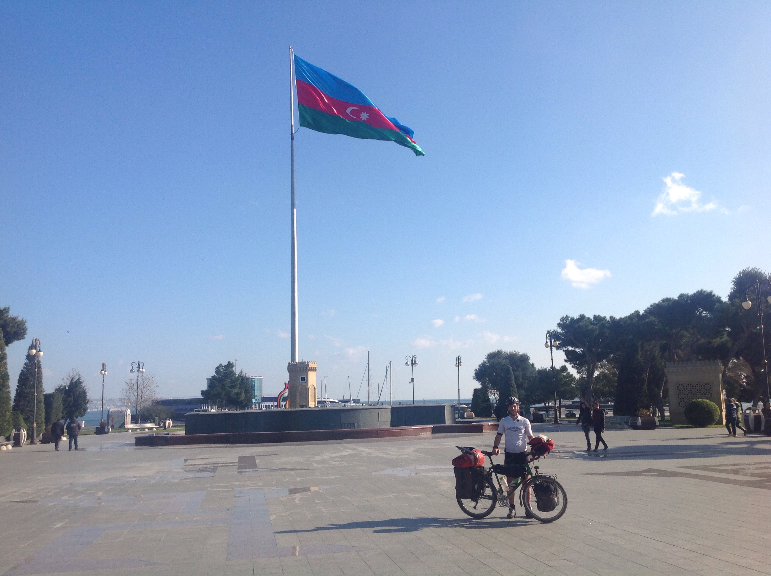 We we had stopped to make use of the ATM that stood independently at the edge of the station. We had to take out all the money we planned to use in Iran now. Due to economic sanctions, Iran has no access to the international banking system so we won’t be able to take money out once we get into the country. So we were slowly withdrawing money over the next few days. This ate must have been the only one for miles around as there was a constant queue of old Azerbaijani guys around it.