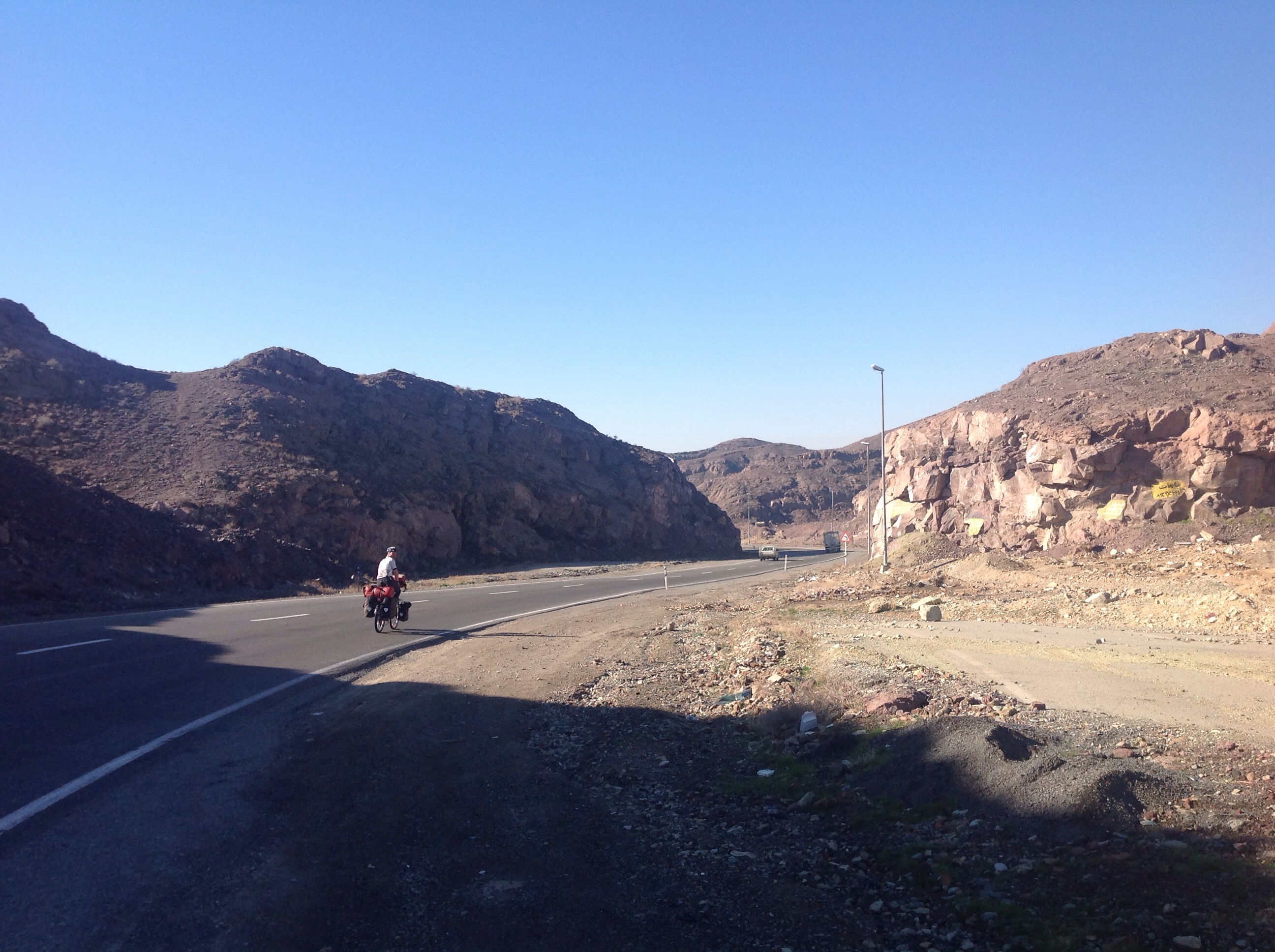 It got hot too. I can’t imagine doing this cycle in summer, it was mid January and still we were sweating. On one particularly long climb we at last gave up trying to wear trousers and swapped out for the sweet, cool relief of shorts. Air on my shins, what a joy! We’ve been riding in shorts since then and haven’t had a problem, even when talking to police, so I think maybe having to wear trousers isn’t all that strict, at least for male tourists.