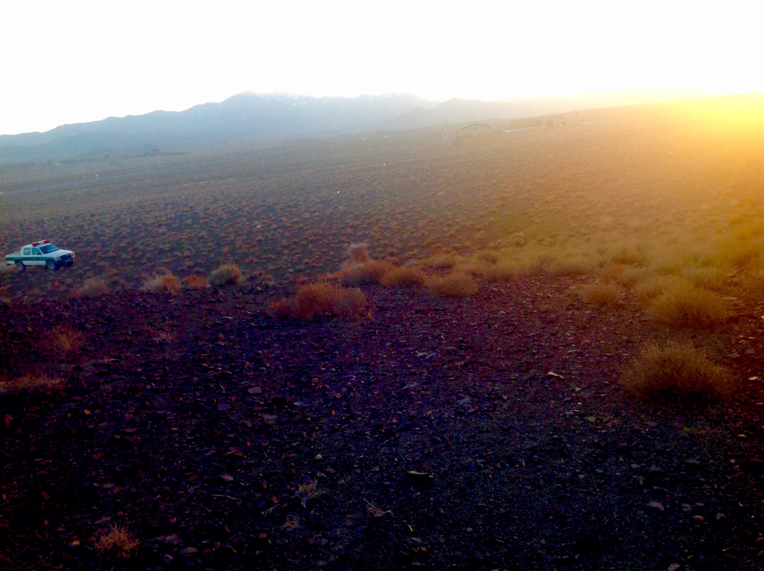 The sun, as always, started to set so it was time to find somewhere to camp. We pulled off the road and up the hill to flat part of ground. As we were setting up a police van driving on the road we had just left, about 150m from where we were now, spotted us. They doubled back and looked for a way up to us, and I suppose when they realised there was no road the just off roaded up the dusty hill towards us.