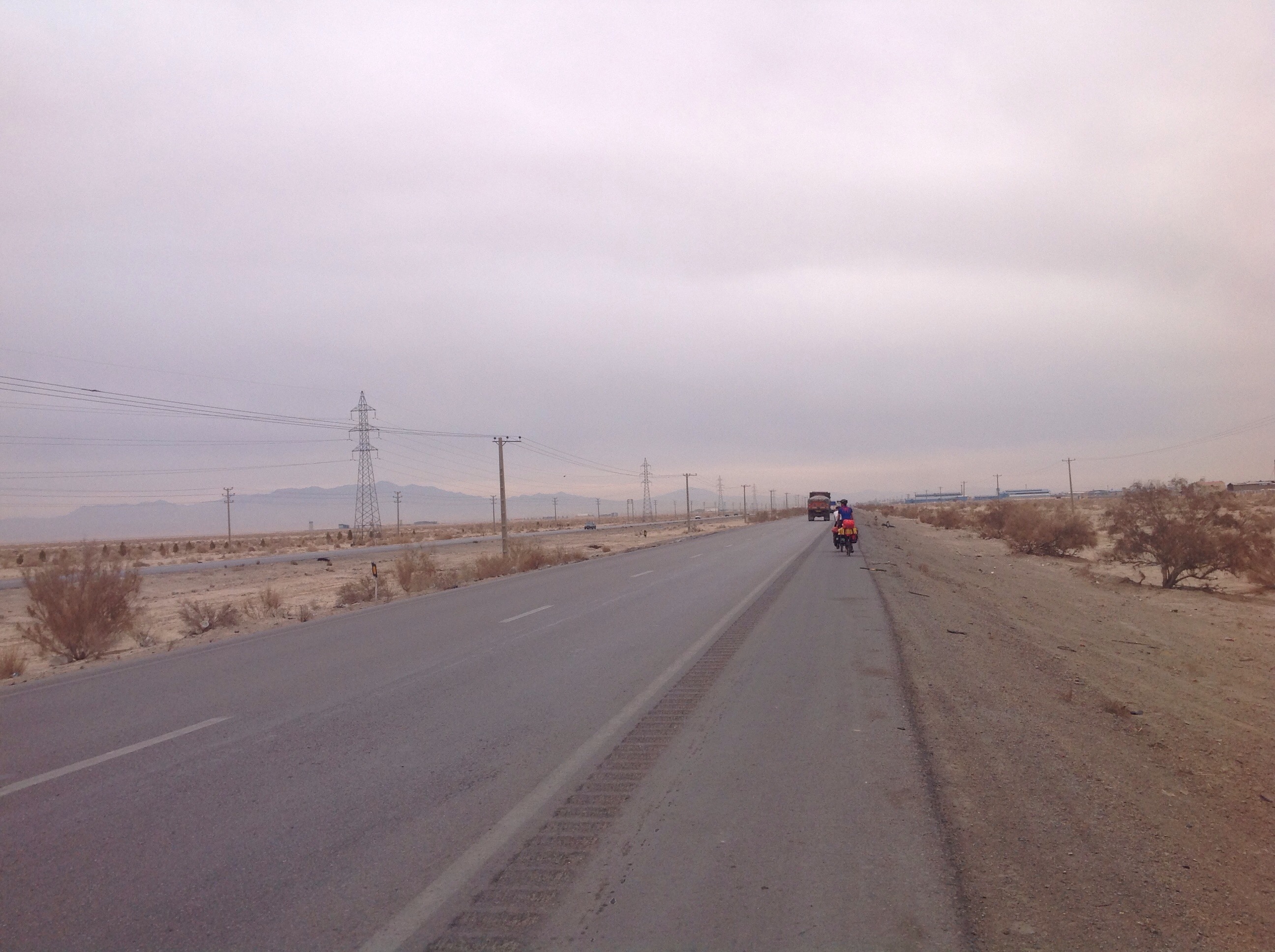 It was Richies first day of cycling and is gave us a new lease on it too. The ride out of the city was mostly through the dispersed factories and farms and complexes of unknown function that ring most of the cities for miles and miles. Though toward the evening, before sundown, we got out into good isolated desert. About 30km out of town we pulled off the road and set up in one spot amongst the tracts of dry, flat, desert.