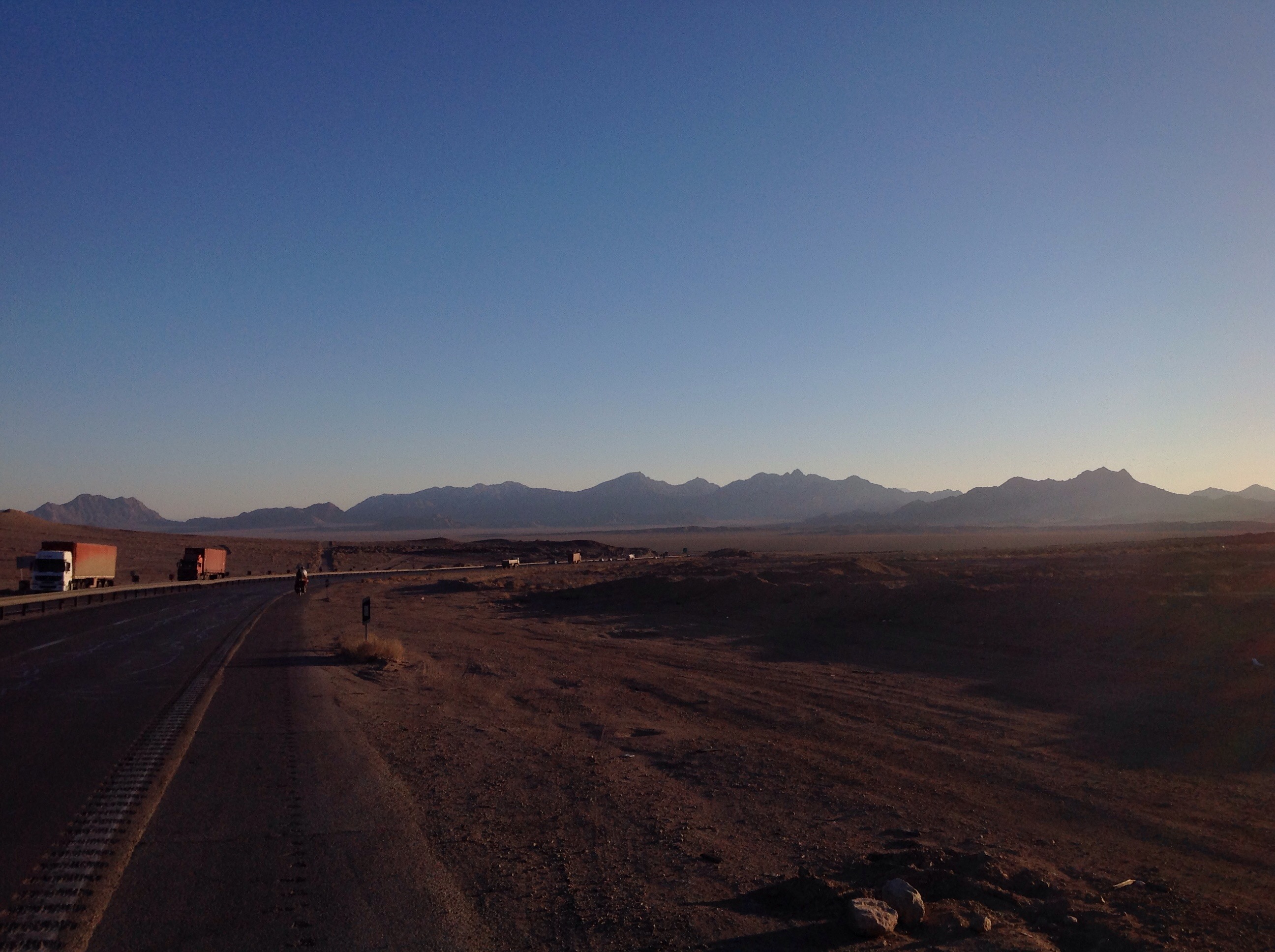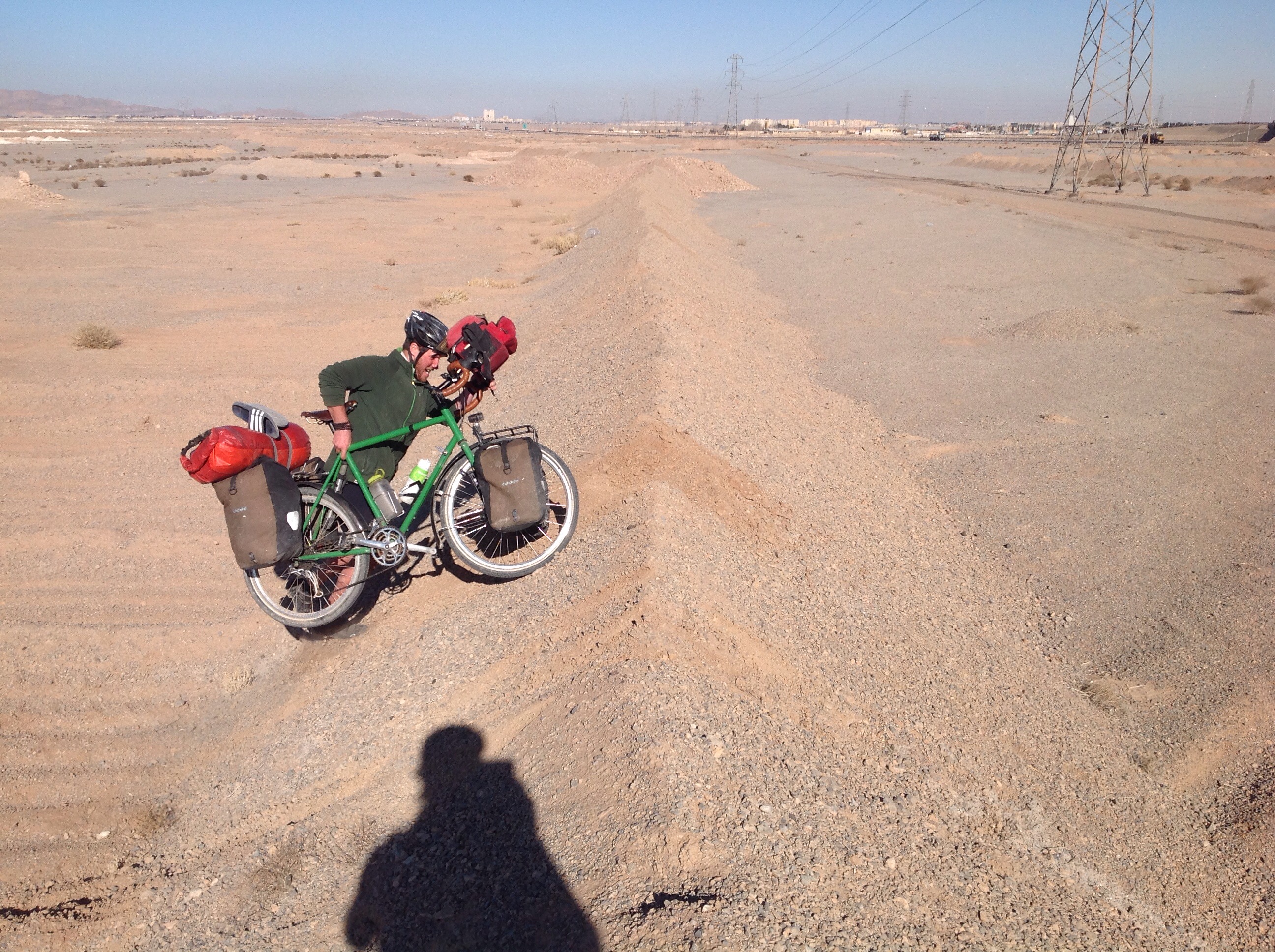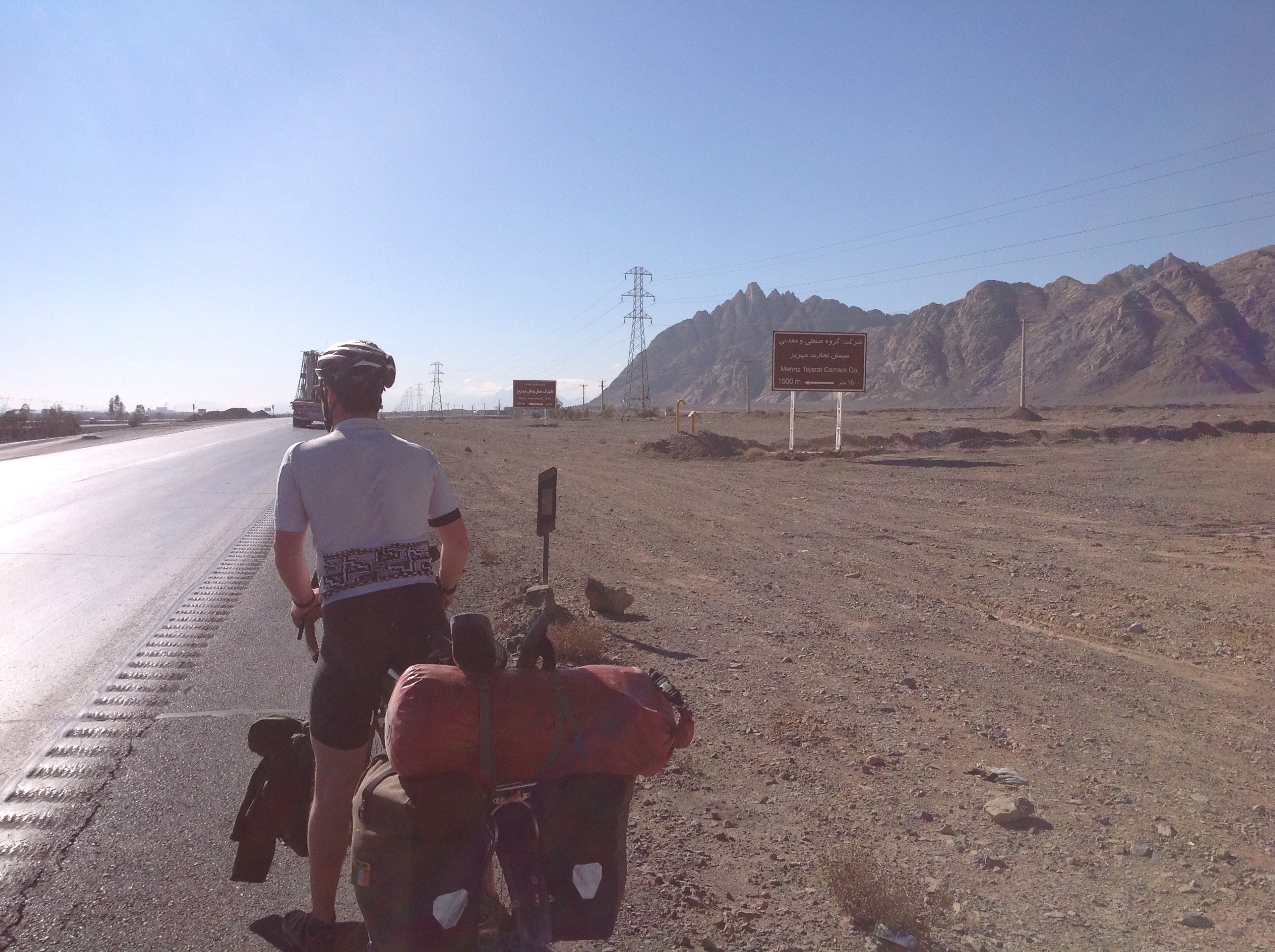 We rode from the campsite outside Yazd up a short hill and then along the flat where we would spend pretty much the rest of the day. We would break up the day with a couple of stops just for a chat to eat if there was somewhere to get food but by and large it was uneventful.
