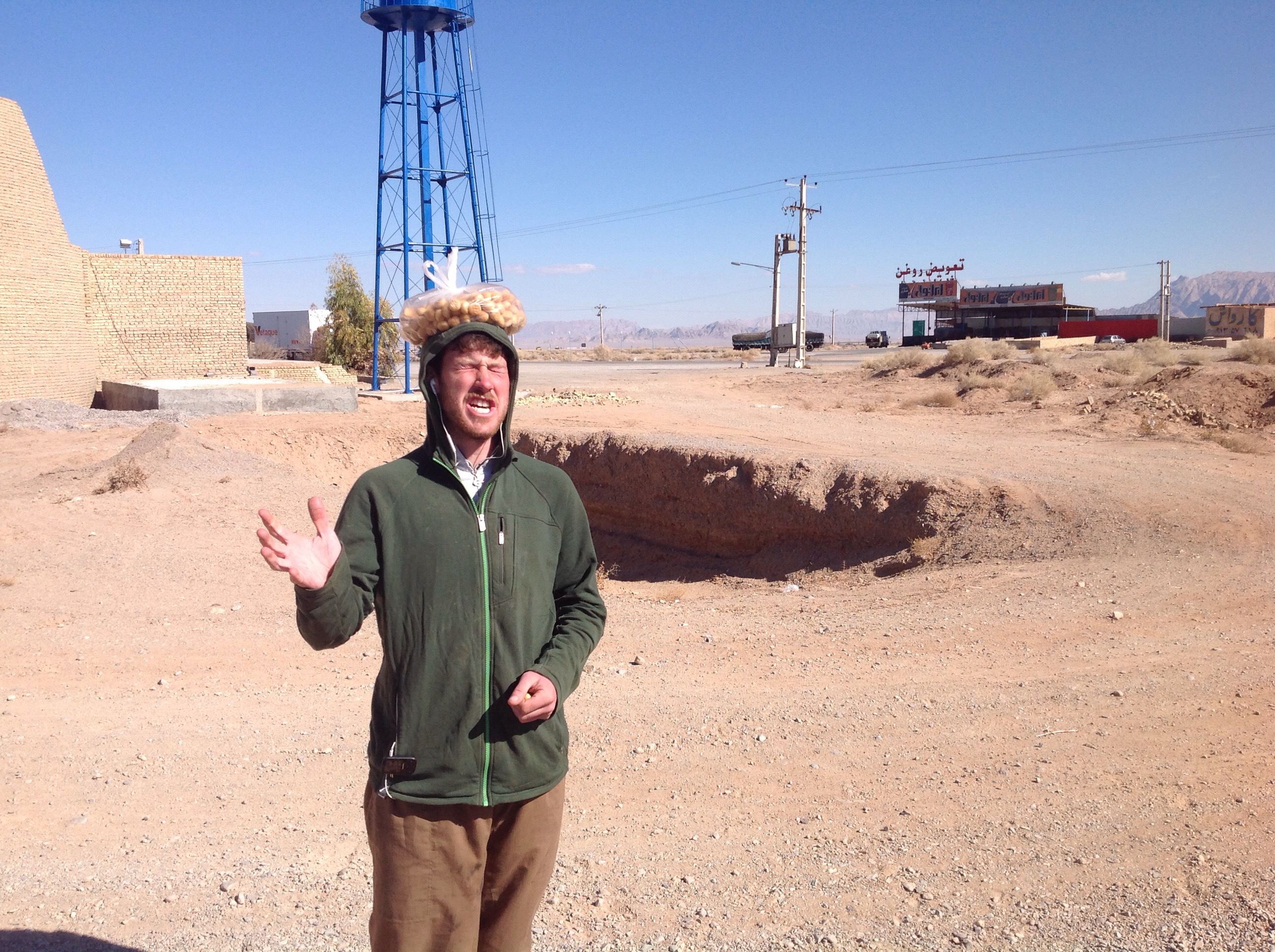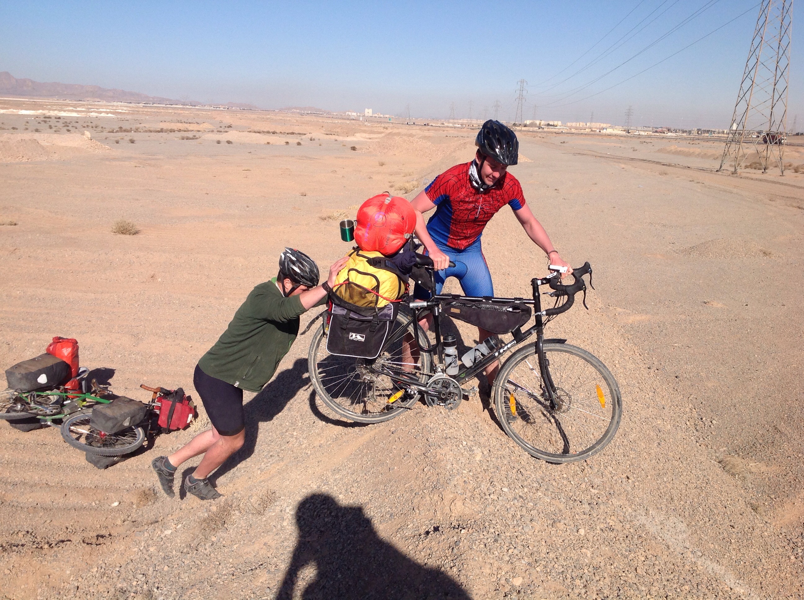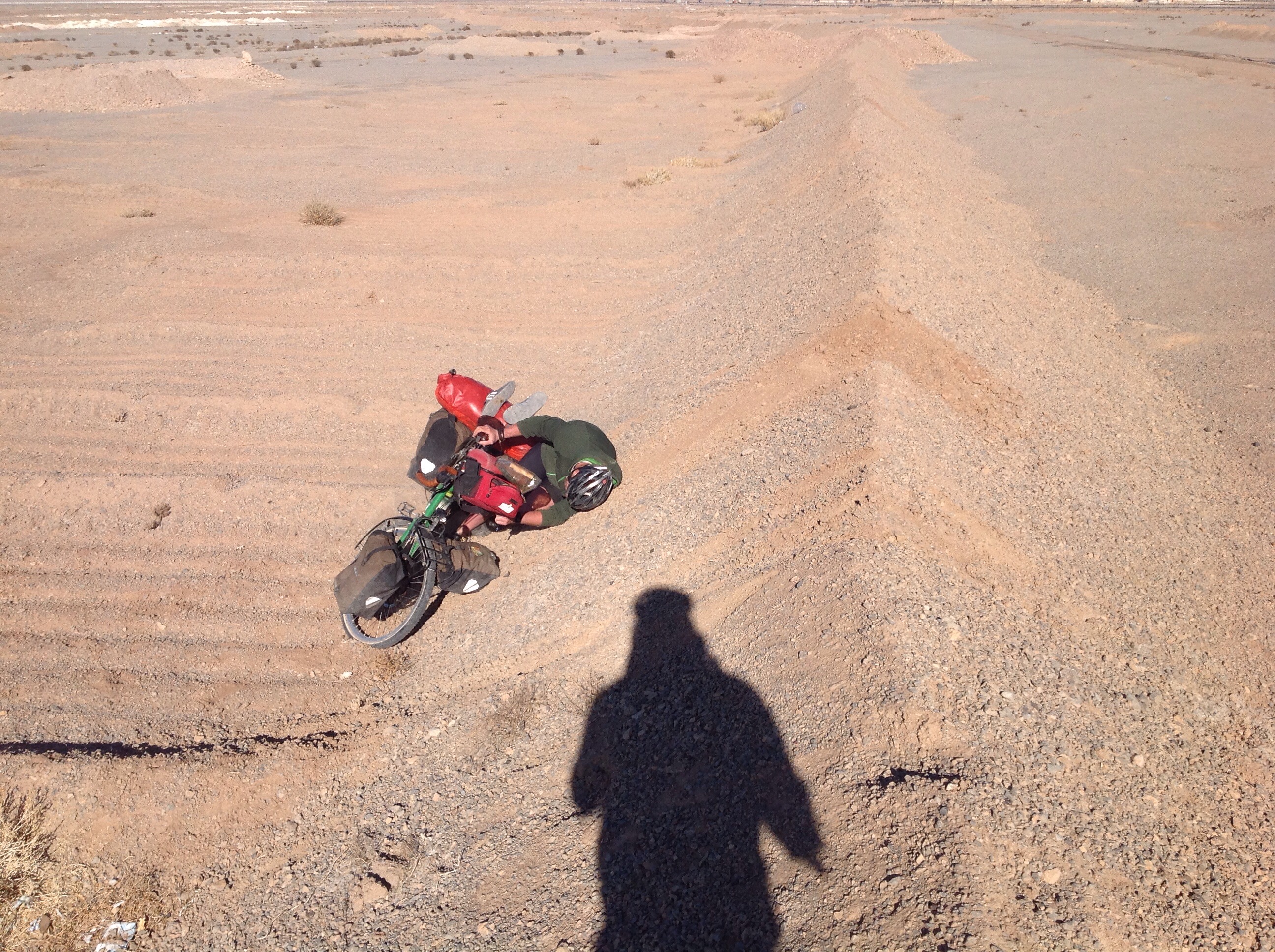 We rode from the campsite outside Yazd up a short hill and then along the flat where we would spend pretty much the rest of the day. We would break up the day with a couple of stops just for a chat to eat if there was somewhere to get food but by and large it was uneventful.