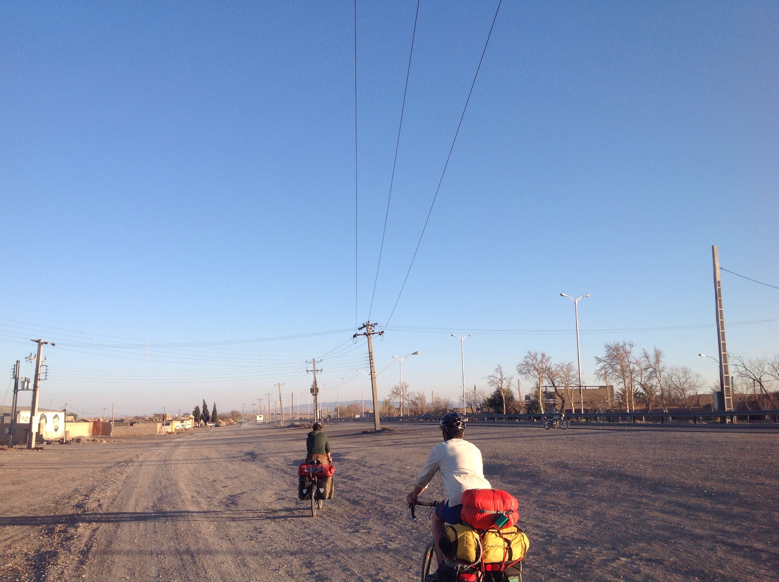 A friend of the interpreter fixed the wiring of light back to the Dynamo and an hour later we were away. Ali (the interpreter) gave us two big bags of pistachios (the local crop) and implored us not to think poorly of their town because of this. He translated messages from many of the onlookers to this effect and we told them all that of course we don’t. They seemed happy to hear it.