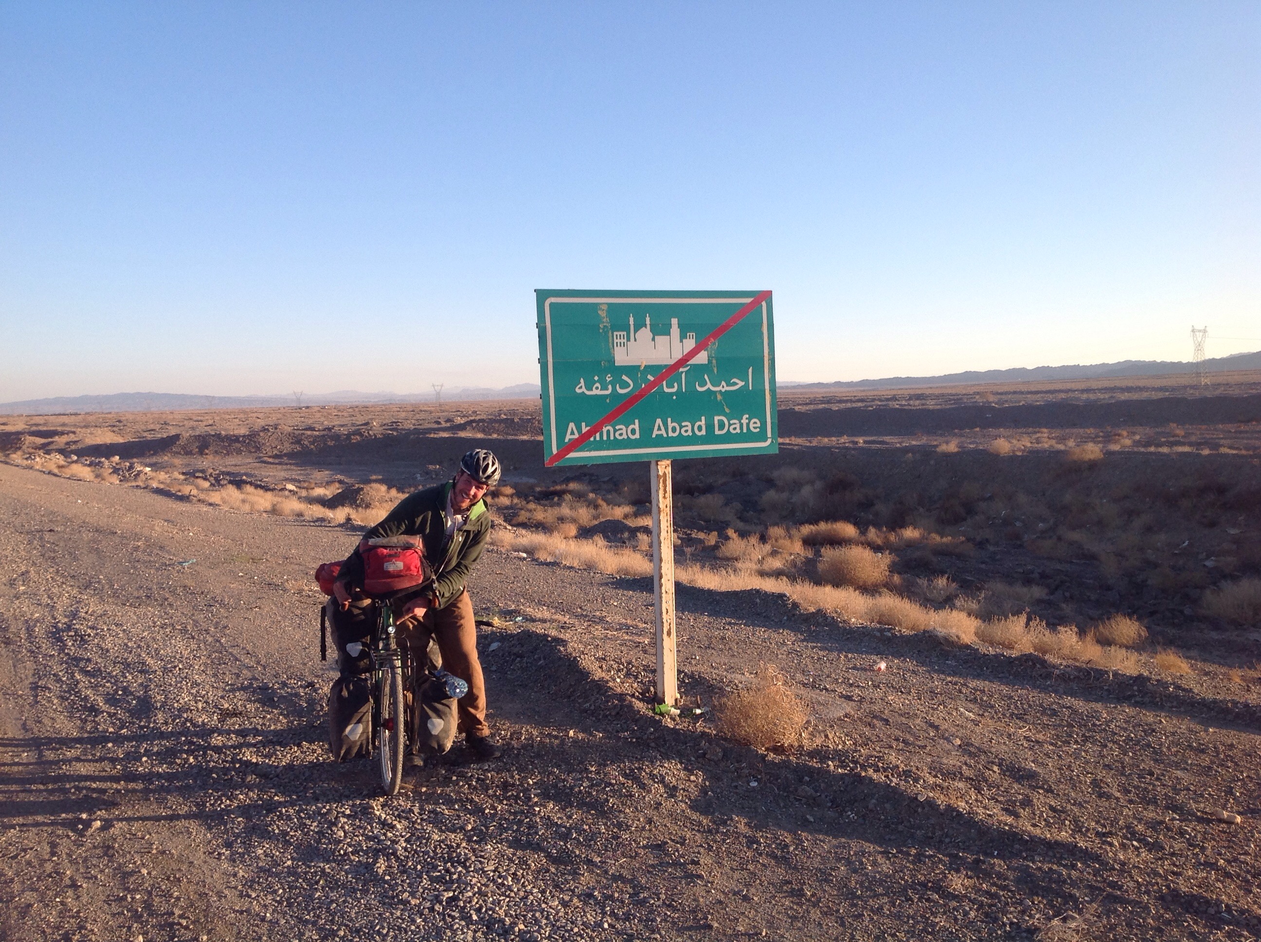 But something interesting did happen today. At lunch in a town called Ahmad Abad we met another cyclist! It was an older French guy coming the opposite direction. He had been riding for a couple of months around the Arabian peninsula and had just gone over the Persian gulf into Iran a couple of weeks ago. We joined him on his side of the road for lunch, sharing stories and talking about bike touring, it was great it had been ages since we had met a cyclists.