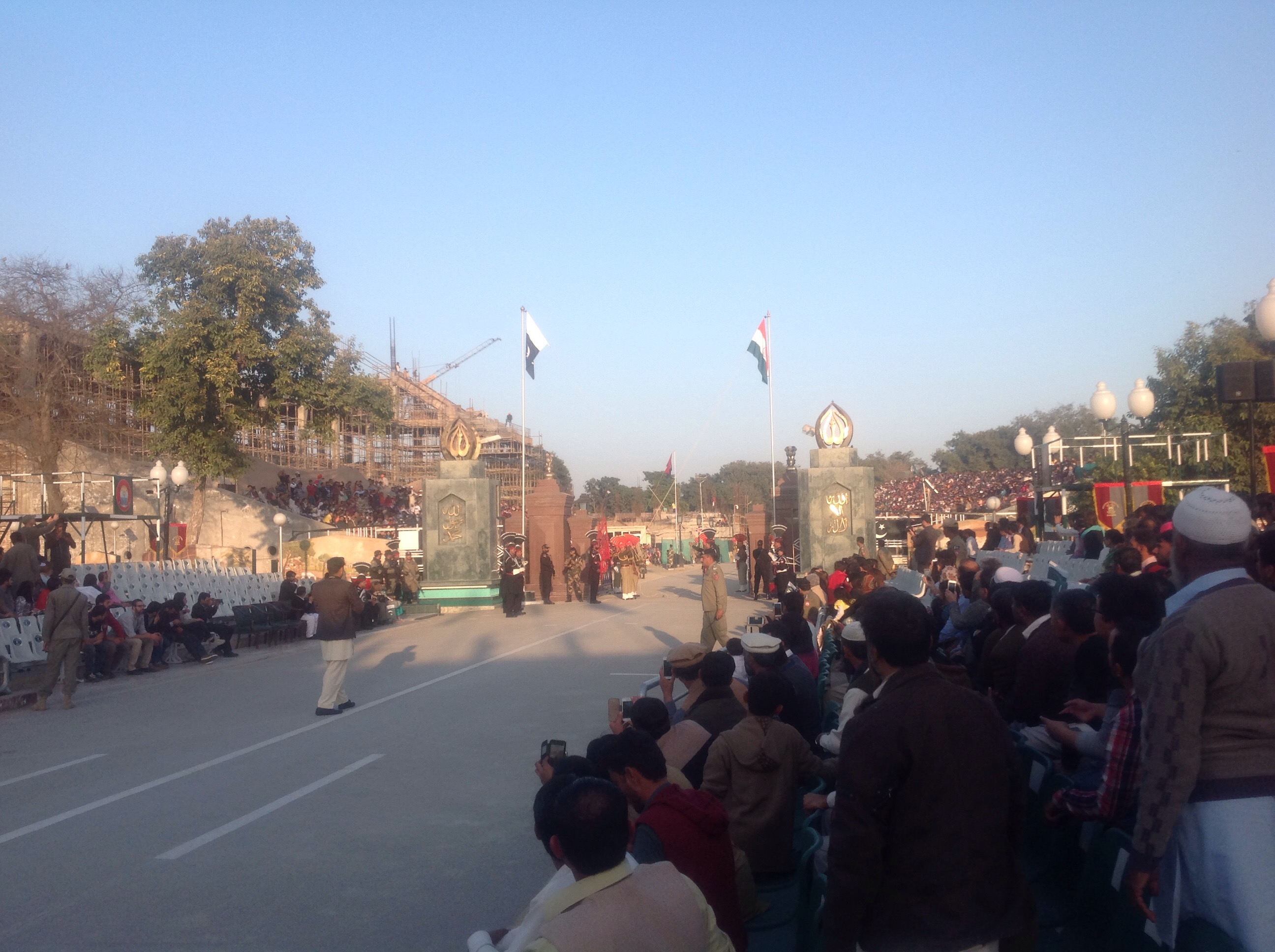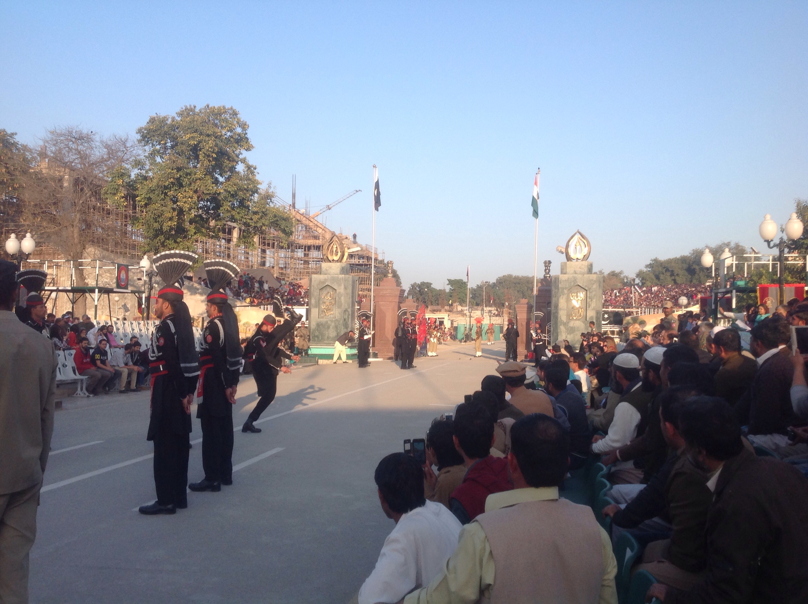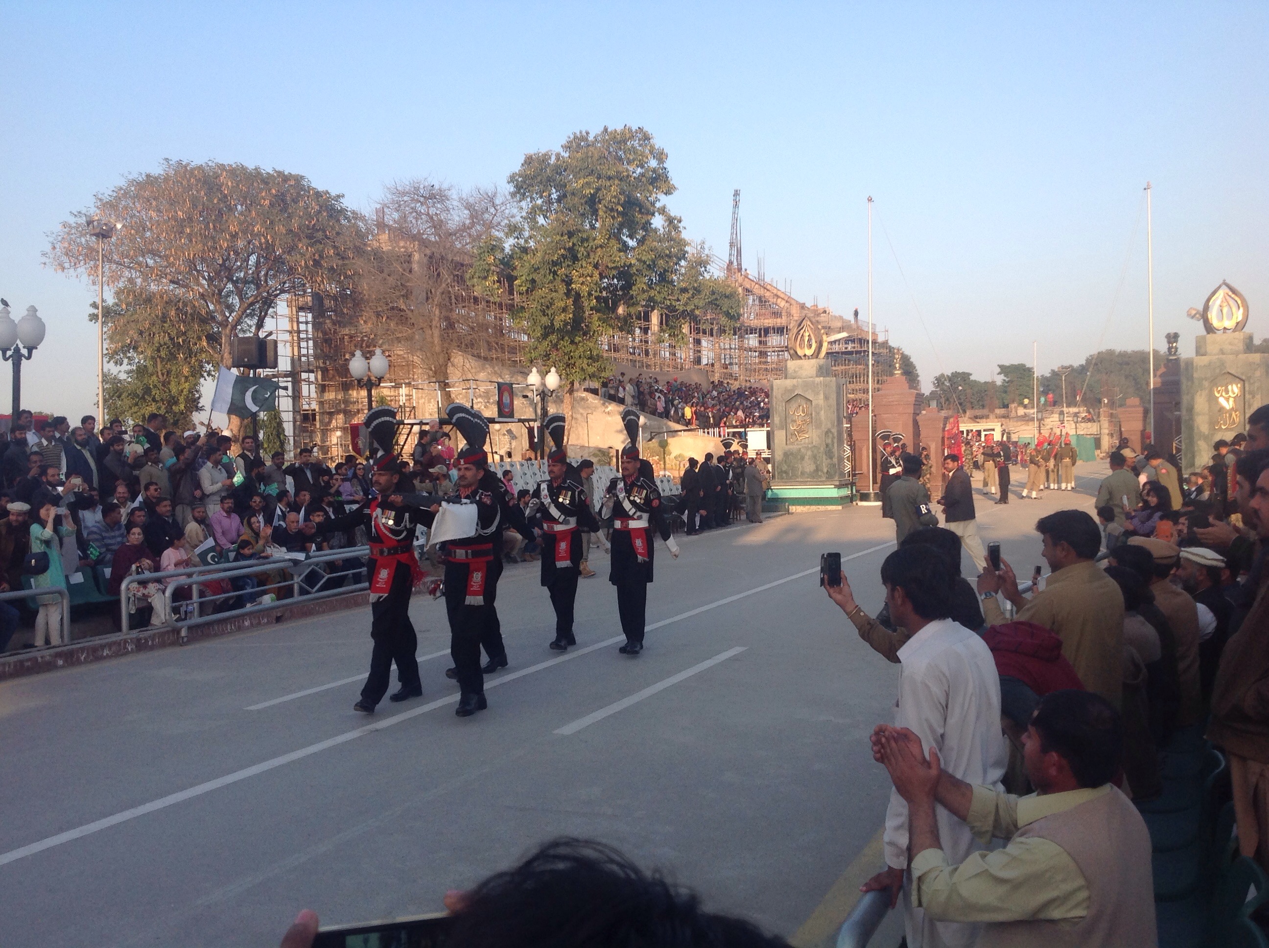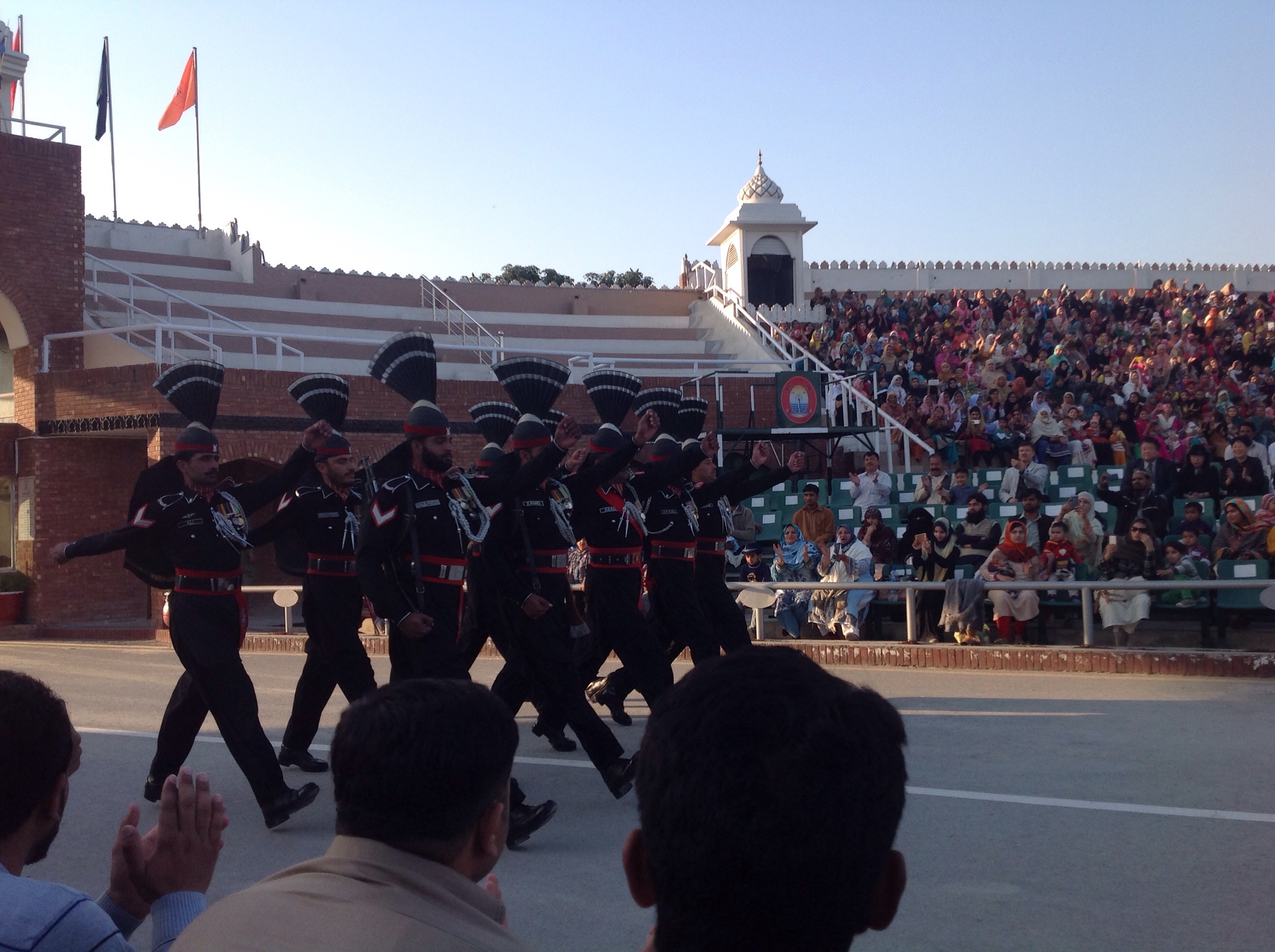The Wagah border is the border between India and Pakistan and the flag lowering ceremony has become a spectacle of military showmanship over the years. Now when you visit bleachers line the road on either side over the border and every evening they are filled with Pakistanis on one side and India the other cheering on their nation’s manoeuvres. The guards march up and down for an hour or so, blustering about with high kicks and shouts and striking impressive posses. The gates are open, the guard on each side shake hands and as the sun sets the flags are lowered, perfectly synchronised.