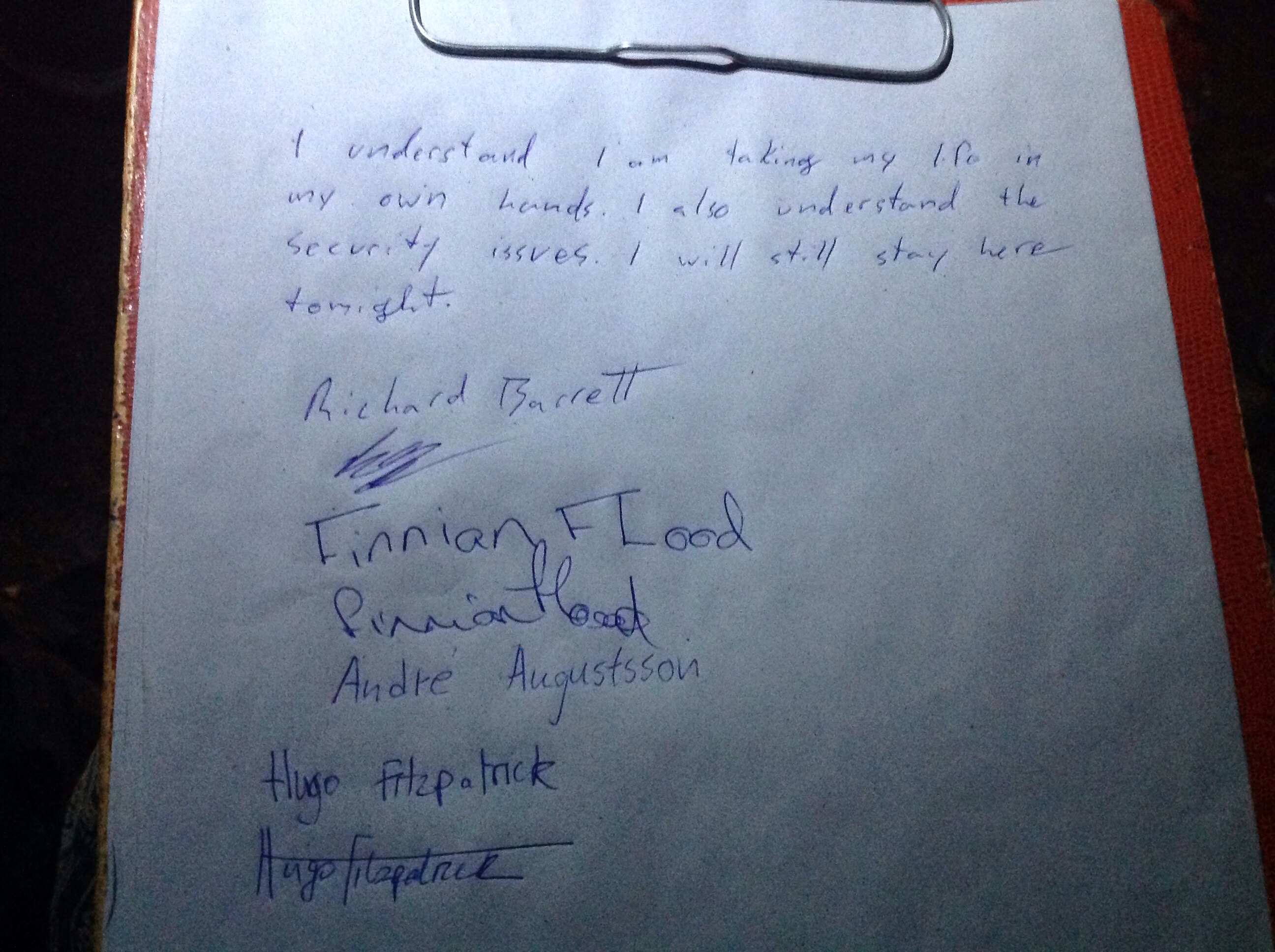 A bit of a stand off occurred, we weren’t going to leave our camp or take it down in the dark so in the end we wrote out a little contract taking responsibility for our safety and relieving it from him, which seemed to do the trick. He left and we settled down to our omelet dinner and contraband whiskey under the a starry mountain sky.