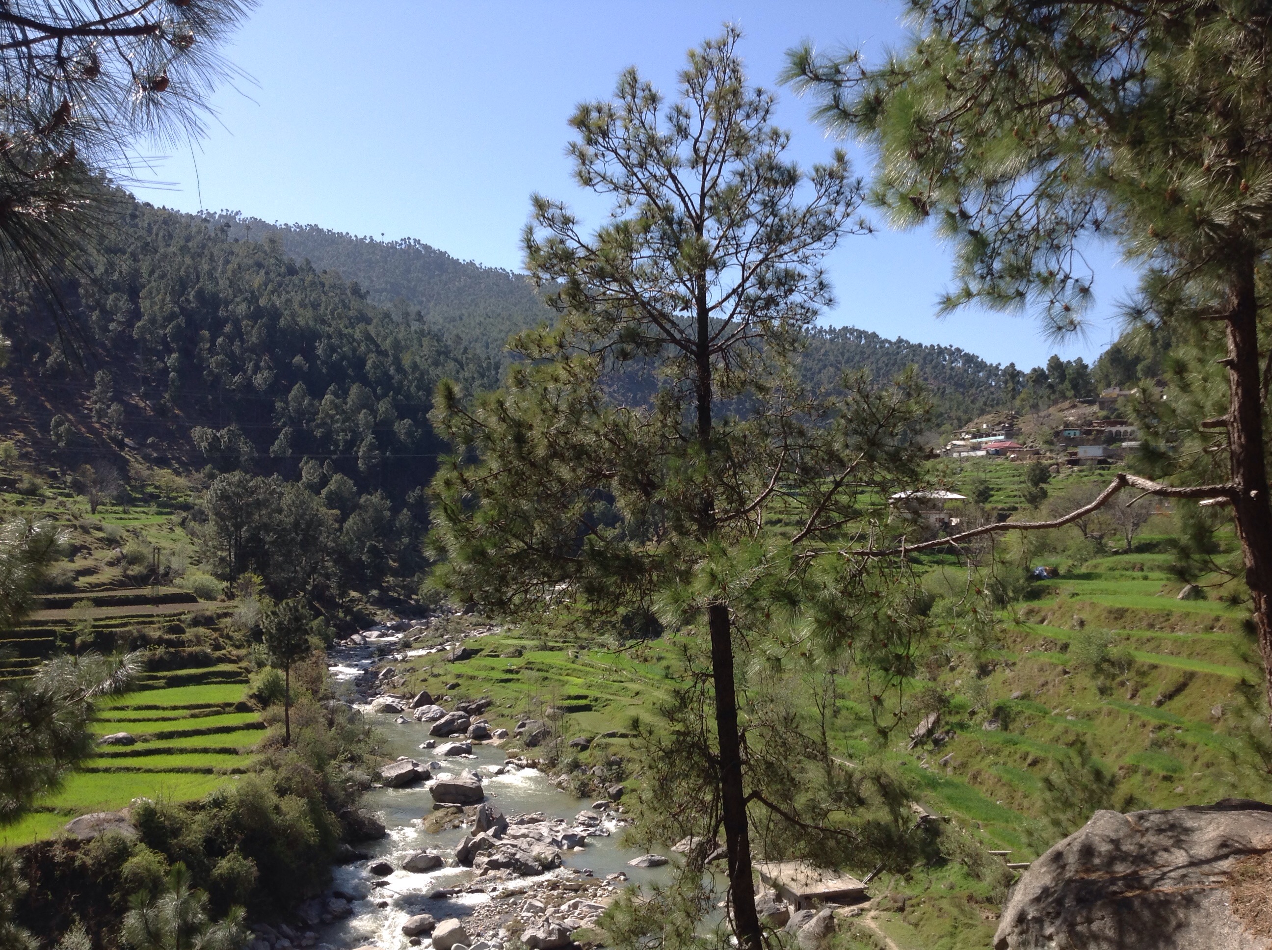 The landscape became even more picturesque. As the foothills of the Karakorum moved in over the flat land more and more terraced farms appeared on the sides of the hills growing rice and tea. This progressed gradually until the hills were all steep and covered with terraces or left with trees where to steep to cultivate. The road into the hills was lush and green with streams running along side it. It felt almost Alpine.
