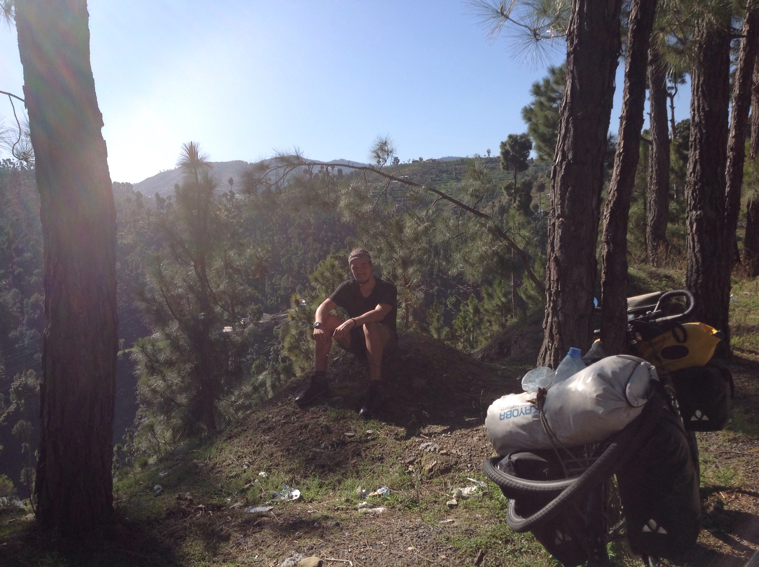 We found a perfect spot out of view of the road amongst a small clearing of trees on small flat top of a hill. We pulled over to set up and of course the escort didn’t want this. We weren’t trying to be difficult or to make their work hard, but we didn’t want to go pay for a hotel when this perfect spot was available. They didn’t have a good reason either, just the old ‘security issues’ and this time they claimed ‘wild dogs would come’. Thus we felt in the right to set up our camp.