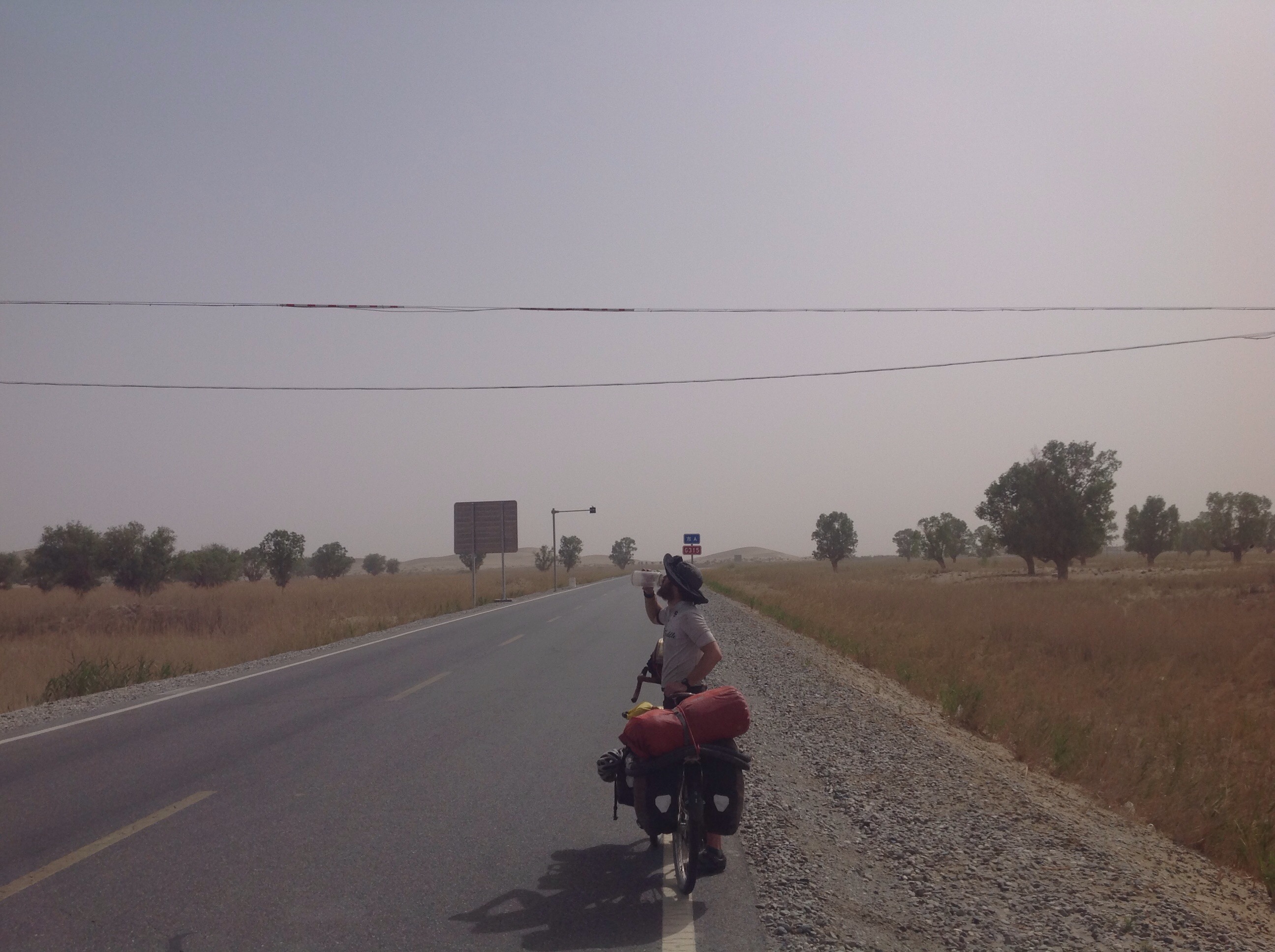 We were starting to run out of water, though we should be passing a village tomorrow according to the map we needed to try and find something. Finally towards the end of the day we passed a small building that was trying to irrigate the dusty sand and turn it into a fruit farm. The pumps were turned off but there was a barrel of clean looking standing water. We took a couple of litres and threw some iodine pills in it to sterilise just in case.