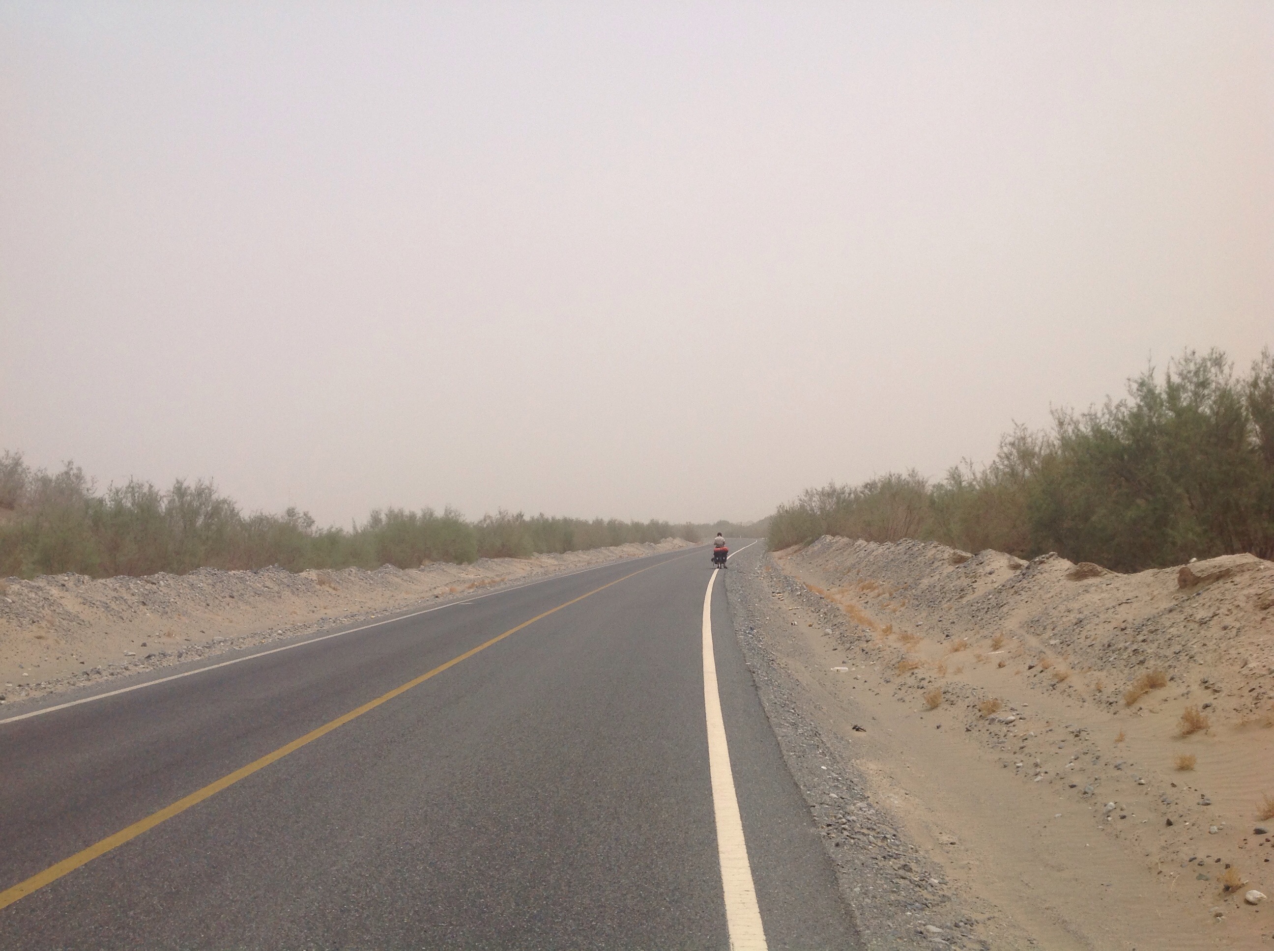 The tailwind was fun while it lasted but by mid-day it had returned to its usual position of blowing into our faces. We arrived at a truck stop that appeared like a mirage out of the dunes, a couple of shacks serving food around a petrol station. We are some beef noodles at one of the homes/food shacks which were delicious.