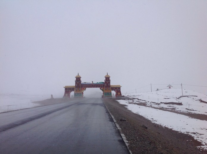The weather closed in again as we made the climb out of the valley in which Zhidoi sat. It started to hail then snow. The limited visibility was a stark contrast to the wide open vistas we had had the luxury of riding through before. The weather cleared up by the time we reached the top though, it seems to be a law of nature that as soon as you bother to put on the extra gear for bad weather it clears up.