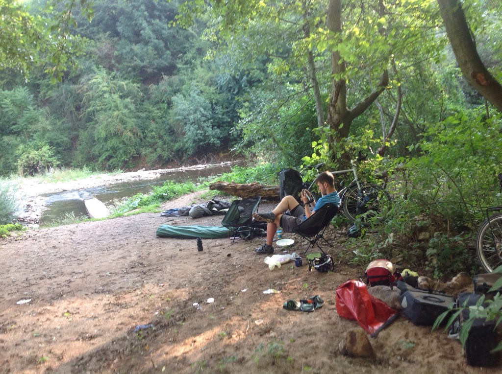 When we finally left two days later it was late in the evening. We rode out of the hostel and up into the mountains around the city, then back down into a gorge not ten minutes later as it was getting dark. we camped out and got ready to really get cycling again properly the next day.