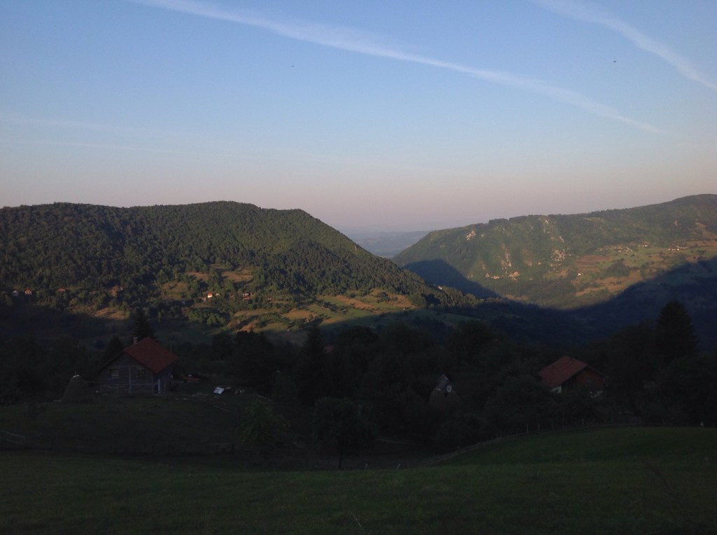 Very soon after his daughter, maybe five or six, came over to us with a a bag of coffee and a mug and gestured towards the house. So we had been invited up to Radoviks place for coffee, and did Radoviks place have a great view. It looked out over the valley which was lit up by the setting sun beautifully.