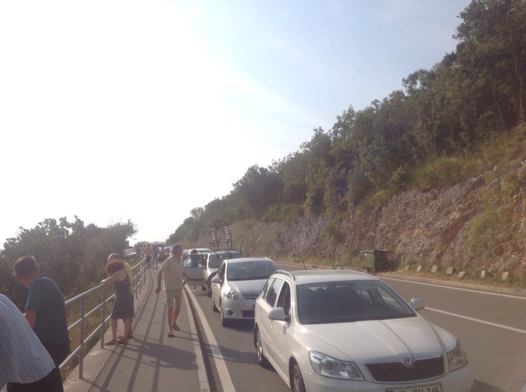 In the early evening, around four thirty, after it had cooled off for a bit we followed the coast road south. Tomorrow morning we were going to get the ferry over to the island of Cres. The ferry left from Brestova which wasn’t to far away. With our destination a comfortable ride away we cycled as the evening cooled to pleasant temperature and the found a small clearing off the road blocked by bushes to rest for the night.