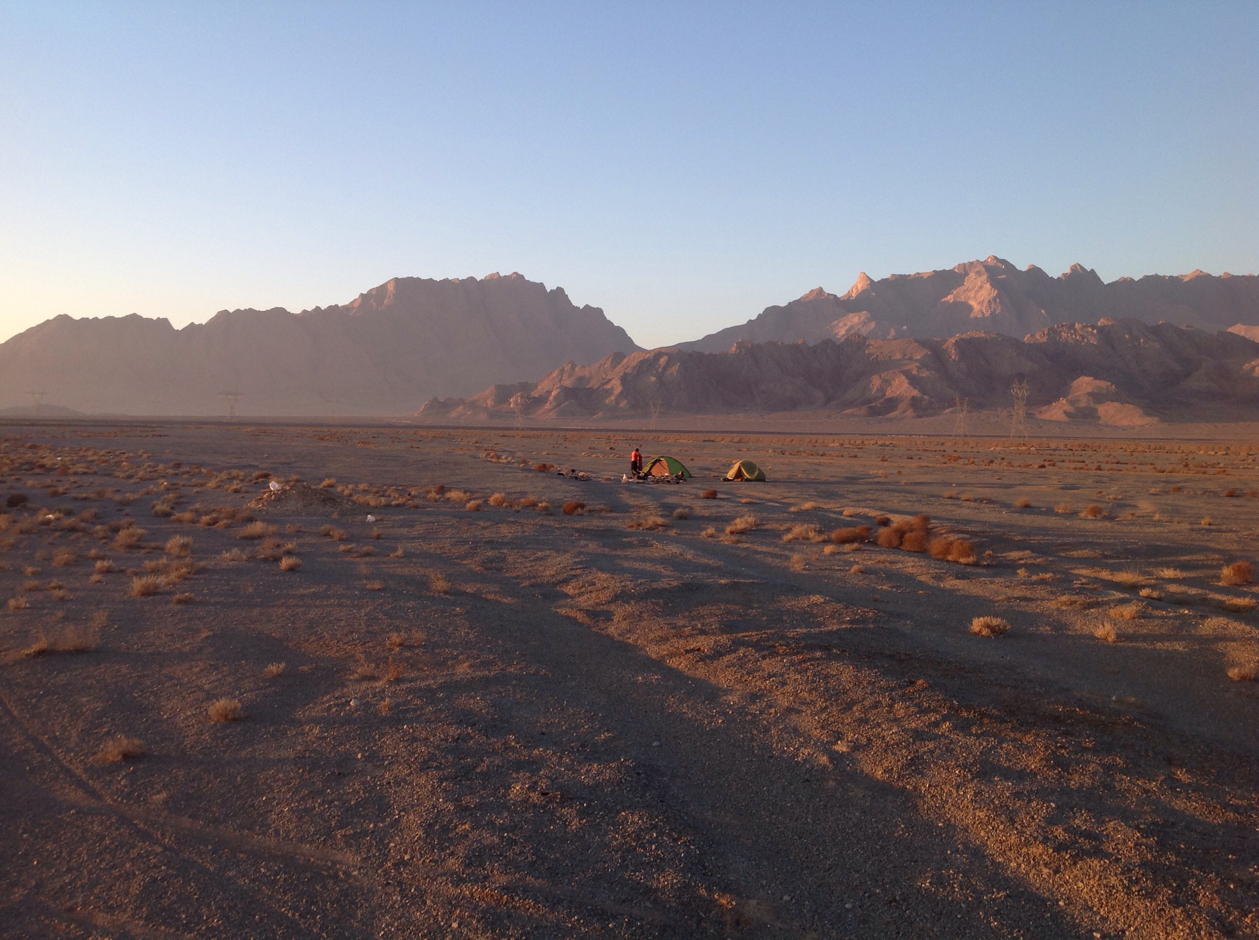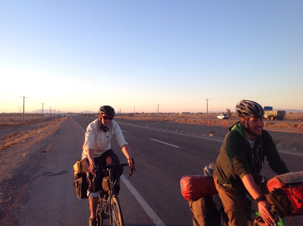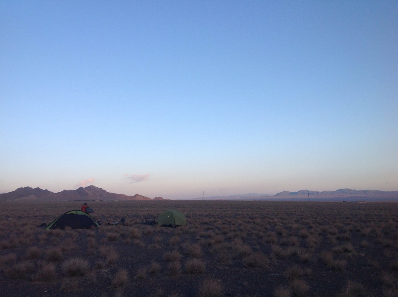 The next day after spending the morning repairing gear and the bikes we started out to Kerman on what would be our final leg of cycling in Iran. We made it only a little bit out of the city and camped on a wide field of small, compact stones. It was a it weird, it seemed like an old asphalt road, except huge and naturally forming. Very strange.