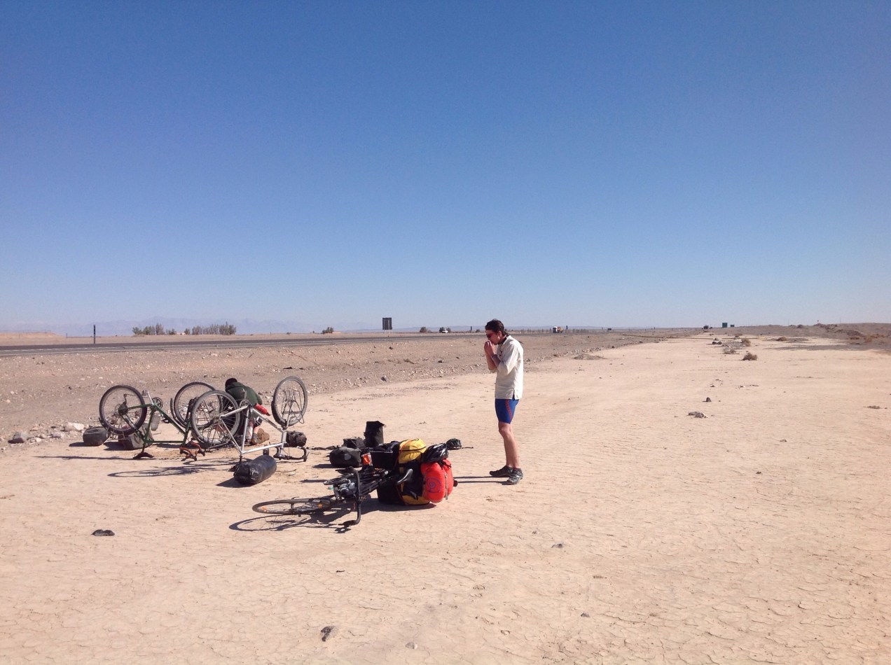 A lot of desert separates us from the next town of Kerman. A lot of flat dusty riding in our future. But though some cycle tourers find the desert riding to be a bit of a drag I guess being from Ireland the being in such a large, flat, dry, isolated place is completely new to us, so it’s kind of exciting in a way.