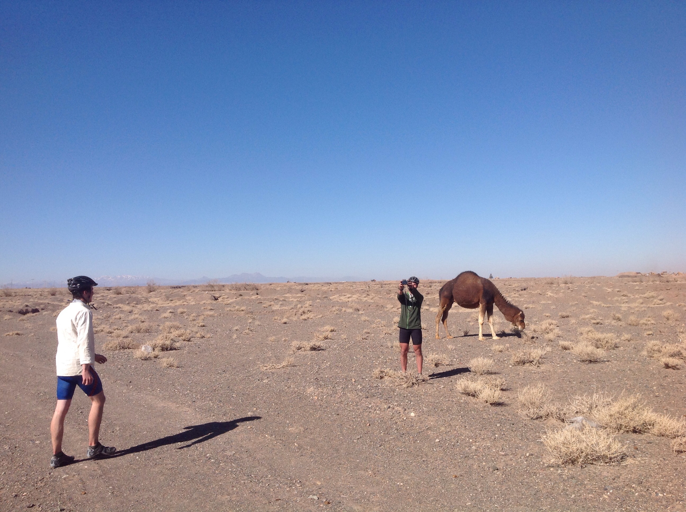 Camels! We’ve seen camels before, but not roaming around the desert on their own. It’s one of those ‘we cycled here’ moments, seeing them just existing in their natural habitat. Finn has been talking about getting a photo with a camel pretty much since we left so we pulled off the road and chased the camels around for a bit trying to photo them.