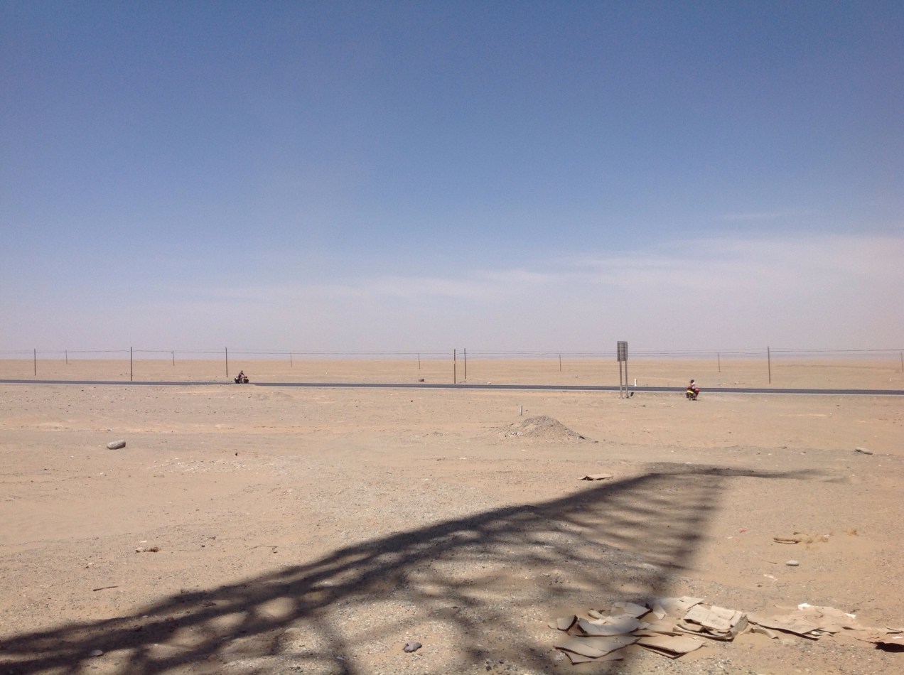 Not a whole lot to say about today’s ride. It was in the flat desert with limited visibility and into a headwind, not much else to say about it. The desert was sandy but marram grass or something like it had been planted alongside the road to prevent the sand from blowing out into it.