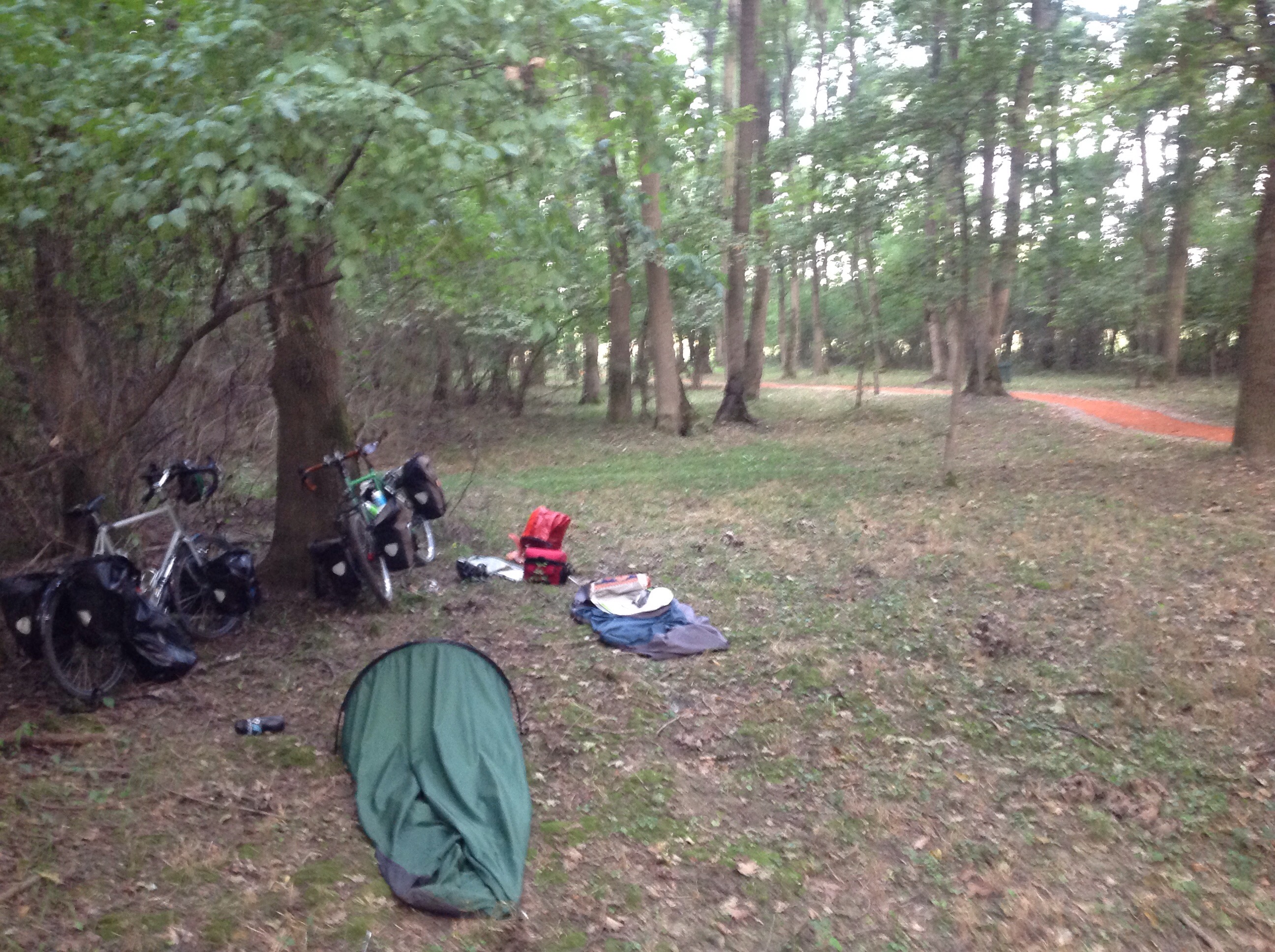 In the evening we road out to the Sava river and on the way passed a small wooded park with a single track running through it where we decided to camp.